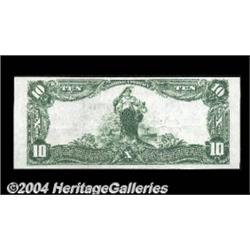 Milwaukee, WI - $10 1902 Plain Back Fr. 624 The National Exchange Bank Ch. # 1003A lovely large example which is listed as CU in the census. Close examination shows a few very light bends, but this is indeed a most attractive Milwaukee note fit for the finest of collections. Bright Extremely Fine-About Uncirculated. <BR><BR><B>Important notice:</B> Heritage usually auctions material at the rate of 200-250 lots per hour. On some occasions eBay Live bid software or the Internet may not be able to keep up with the pace of the auction. We recommend placing a realistic absentee bid now as insurance to avoid disappointment. Occasionally the auctioneer may eliminate or reject an eBay Live bid, and the auctioneer may also reopen a lot after the close of the eBay live bidding (usually because we missed an audience bid), and may reject your bid even if it shows you as the winning bidder. By bidding via eBay Live, you agree that Heritage may award the lot to another bidder at its sole discretion under the circumstances described above or any other reasonable circumstances. Since eBay bids are not shown to us until we open the lot on the floor, we treat those bids just like floor bids. In most cases the floor responds before the eBay bid is presented to us, due to Internet lag time, so for consistency we have made it a policy that floor bids are always considered first over tie eBay live bids. Also please note that all Heritage lots purchased through eBay Live carry a 20% Buyer's Premium. Please make sure you read the Terms and Conditions before you bid. <BR><BR><B>IMPORTANT ANNOUNCEMENT ABOUT RESERVES:</B> Heritage now divulges all reserves on its web site 7 days before every auction. If you want to know whether the reserve on this lot has been met, and if not, what the reserve amount is, please visit this lot page on the HeritageCoin.com web site, or email: bid@HeritageGalleries.com
