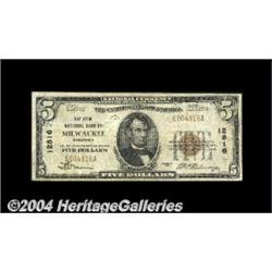 Milwaukee, WI - $5 1929 Ty. 1 Bay View NB Ch. # 12816The second title used by this institution, found only on small notes. The new census shows fifteen specimens reported. Fine-Very Fine. <BR><BR><B>Important notice:</B> Heritage usually auctions material at the rate of 200-250 lots per hour. On some occasions eBay Live bid software or the Internet may not be able to keep up with the pace of the auction. We recommend placing a realistic absentee bid now as insurance to avoid disappointment. Occasionally the auctioneer may eliminate or reject an eBay Live bid, and the auctioneer may also reopen a lot after the close of the eBay live bidding (usually because we missed an audience bid), and may reject your bid even if it shows you as the winning bidder. By bidding via eBay Live, you agree that Heritage may award the lot to another bidder at its sole discretion under the circumstances described above or any other reasonable circumstances. Since eBay bids are not shown to us until we open the lot on the floor, we treat those bids just like floor bids. In most cases the floor responds before the eBay bid is presented to us, due to Internet lag time, so for consistency we have made it a policy that floor bids are always considered first over tie eBay live bids. Also please note that all Heritage lots purchased through eBay Live carry a 20% Buyer's Premium. Please make sure you read the Terms and Conditions before you bid. <BR><BR><B>IMPORTANT ANNOUNCEMENT ABOUT RESERVES:</B> Heritage now divulges all reserves on its web site 7 days before every auction. If you want to know whether the reserve on this lot has been met, and if not, what the reserve amount is, please visit this lot page on the HeritageCoin.com web site, or email: bid@HeritageGalleries.com