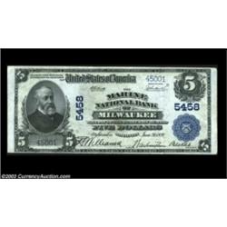 Milwaukee, WI - $5, $20 1902 Plain Back Fr. 607, 659 The Marine NB Ch. # 5458Two notes, the $5 a nic