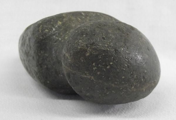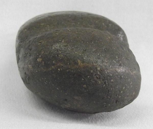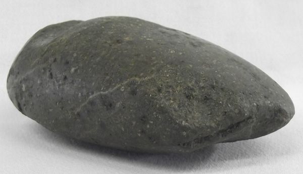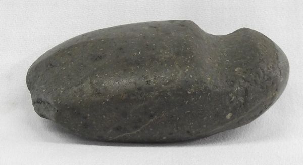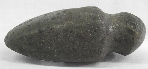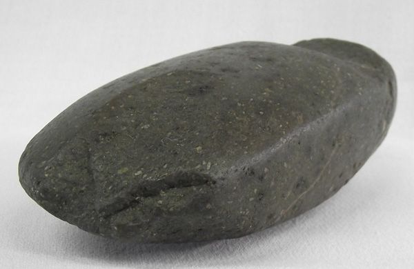 Mimbres black green stone axehead, 3/4 grooved, head in nice rounded condition, edge has some damage. measures 5.5''L x 3.75''H x 1.5''W. From New Mexico Estate, acquired in accordance with all State and Federal Rules and Regulations.