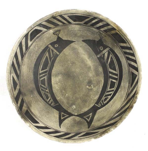 Mimbres Double Fish Pottery Bowl Replica, measures 2.5''H x 8.5''D