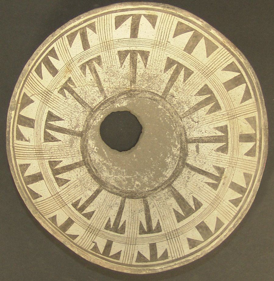 Exquisite larger, killed, black-on-white bowl the very wide design band a fine line grid forming two zones of "T" shaped units that repeat throughout the entire design. Good condition, intact, glued but not restored. (#26 in the Baca book) 4-3/4" x 11"