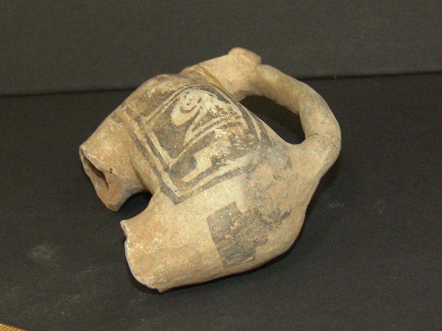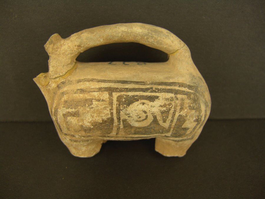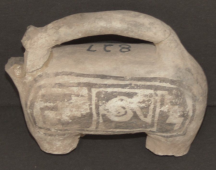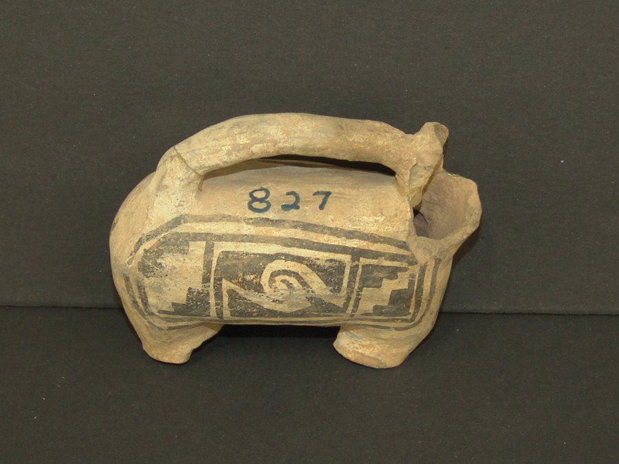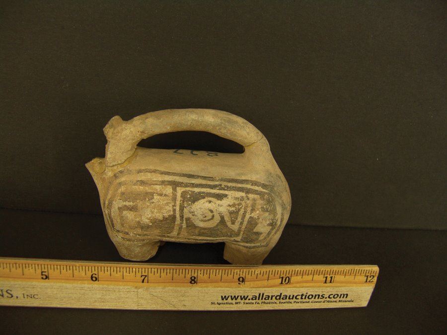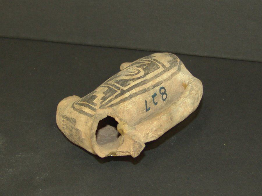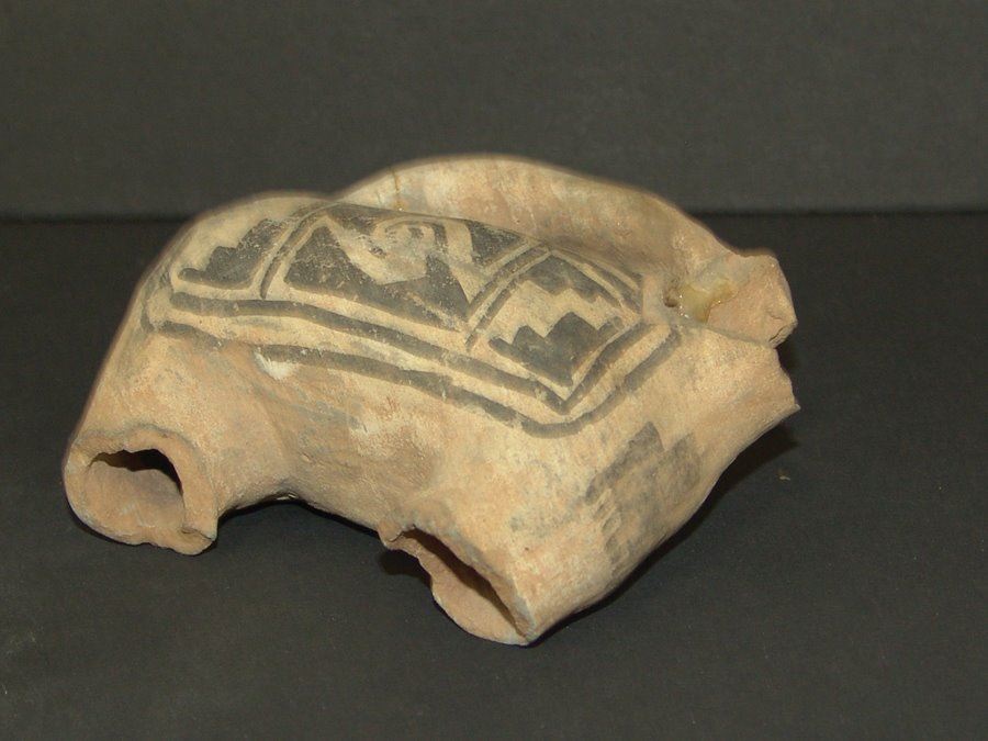 Rare, black on white, headless effigy handle or spout probably from a much larger water jar. Good condition, incomplete. (This piece not in the Baca book),Pre-Historic, 3-1/2" x 4-1/2" x 2"