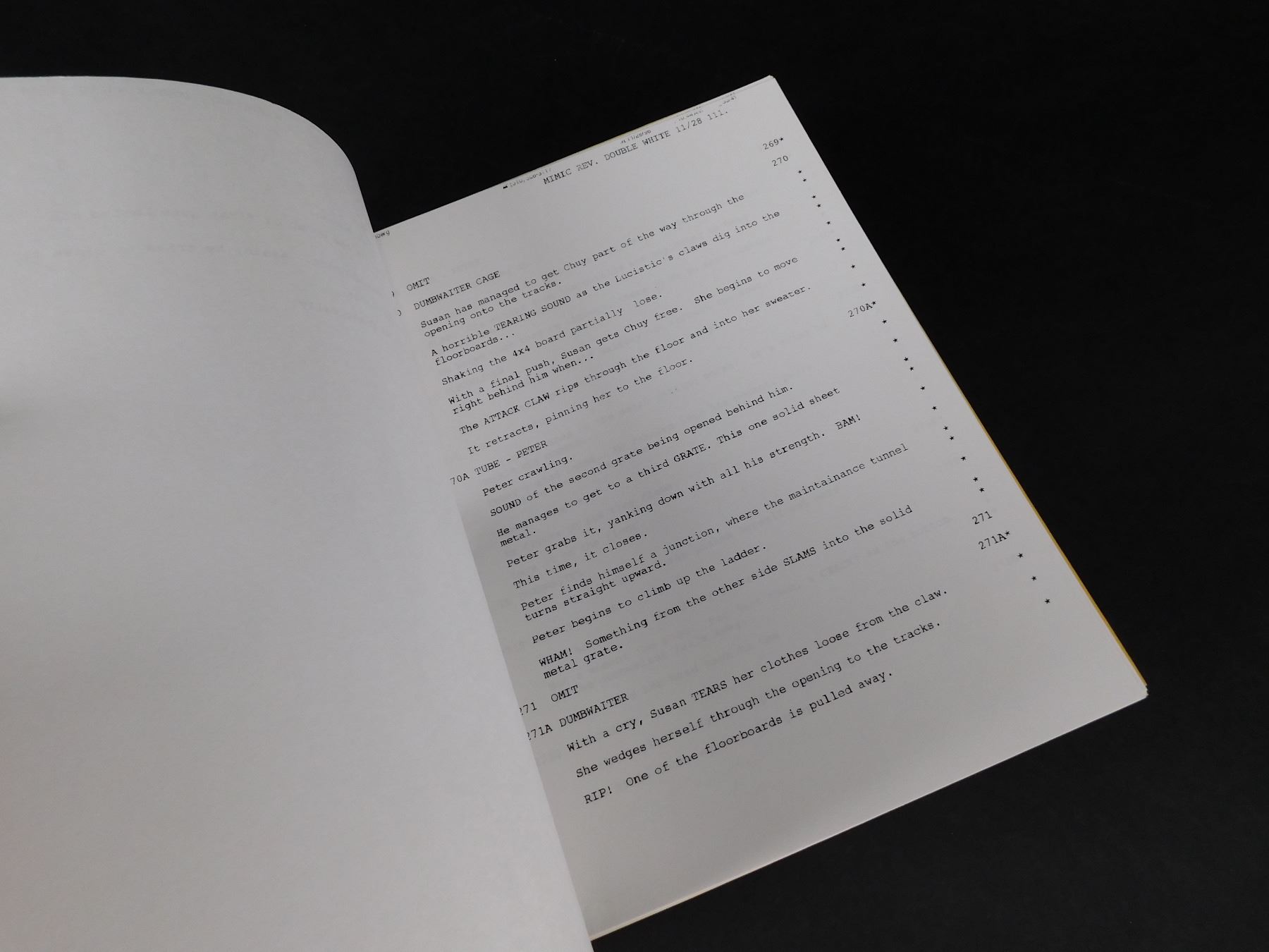 A shooting script for Mimic, written by Matt Robbins and Guillermo del Toro.