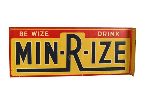 Min-r-ize  tin  2-sided flange sign  9 x 22 "   good condition