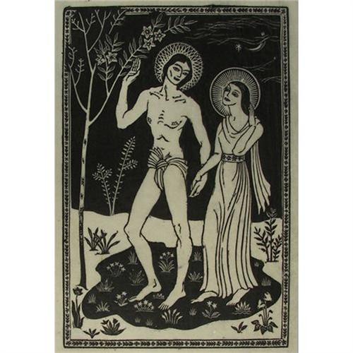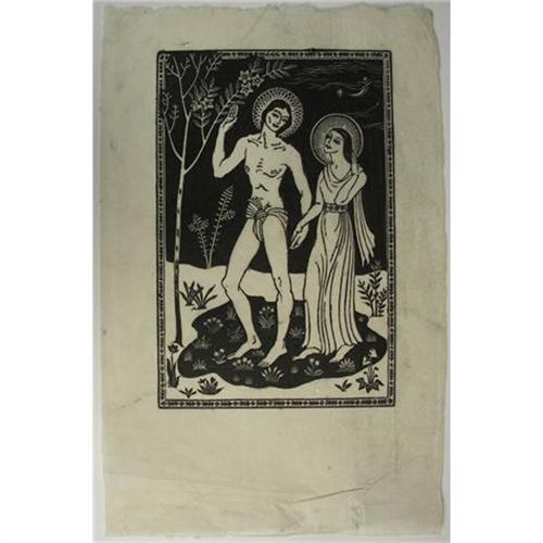 Mina Conant (1910-1999) Linoleum Cut, Religious Scene, image size 8 3/8" x 5 5/8", unsigned