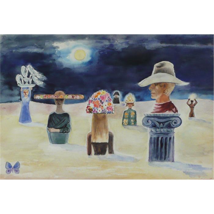 Mina Conant (b.1910) Heads & hats Signed lower right 14" x 20"