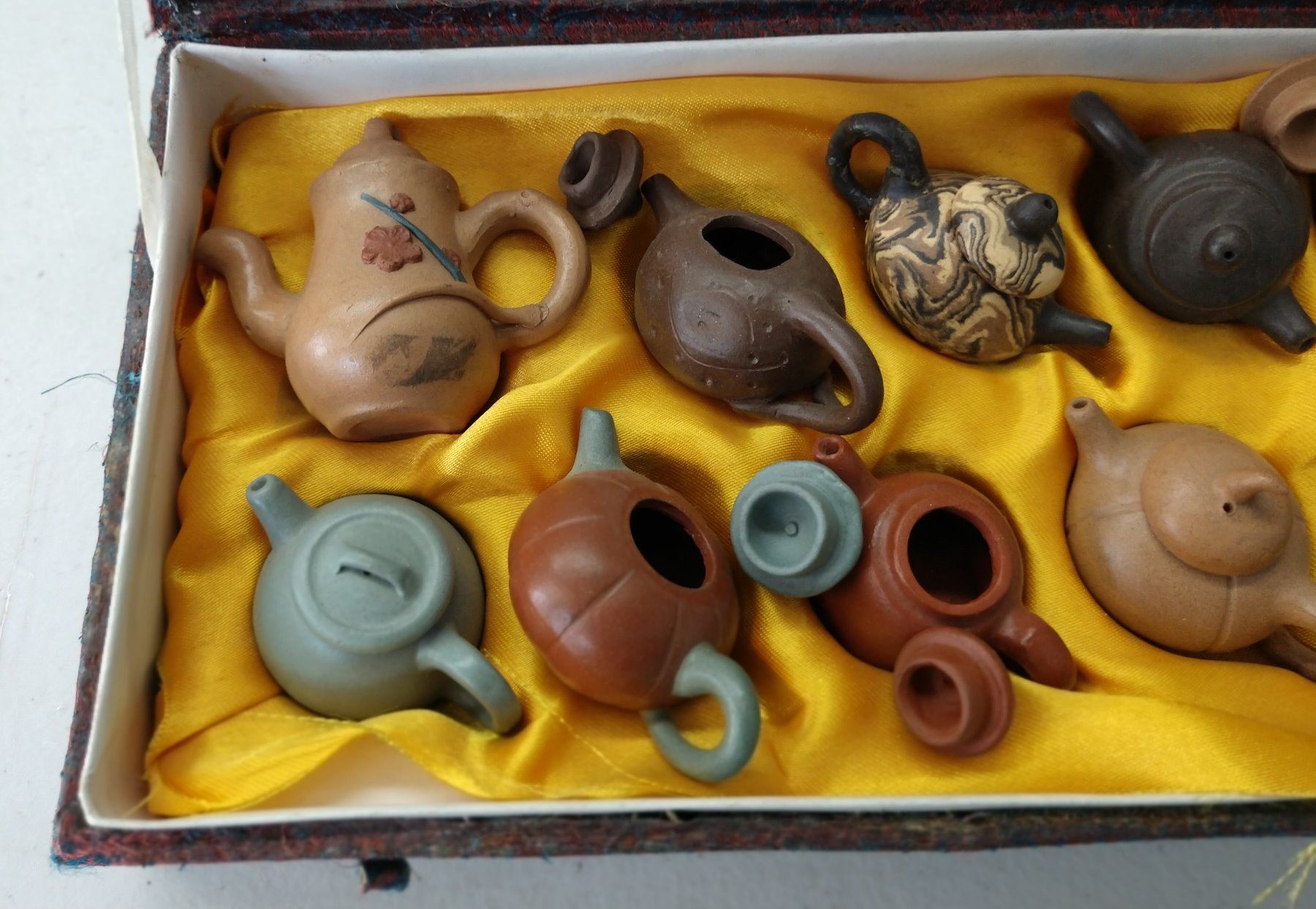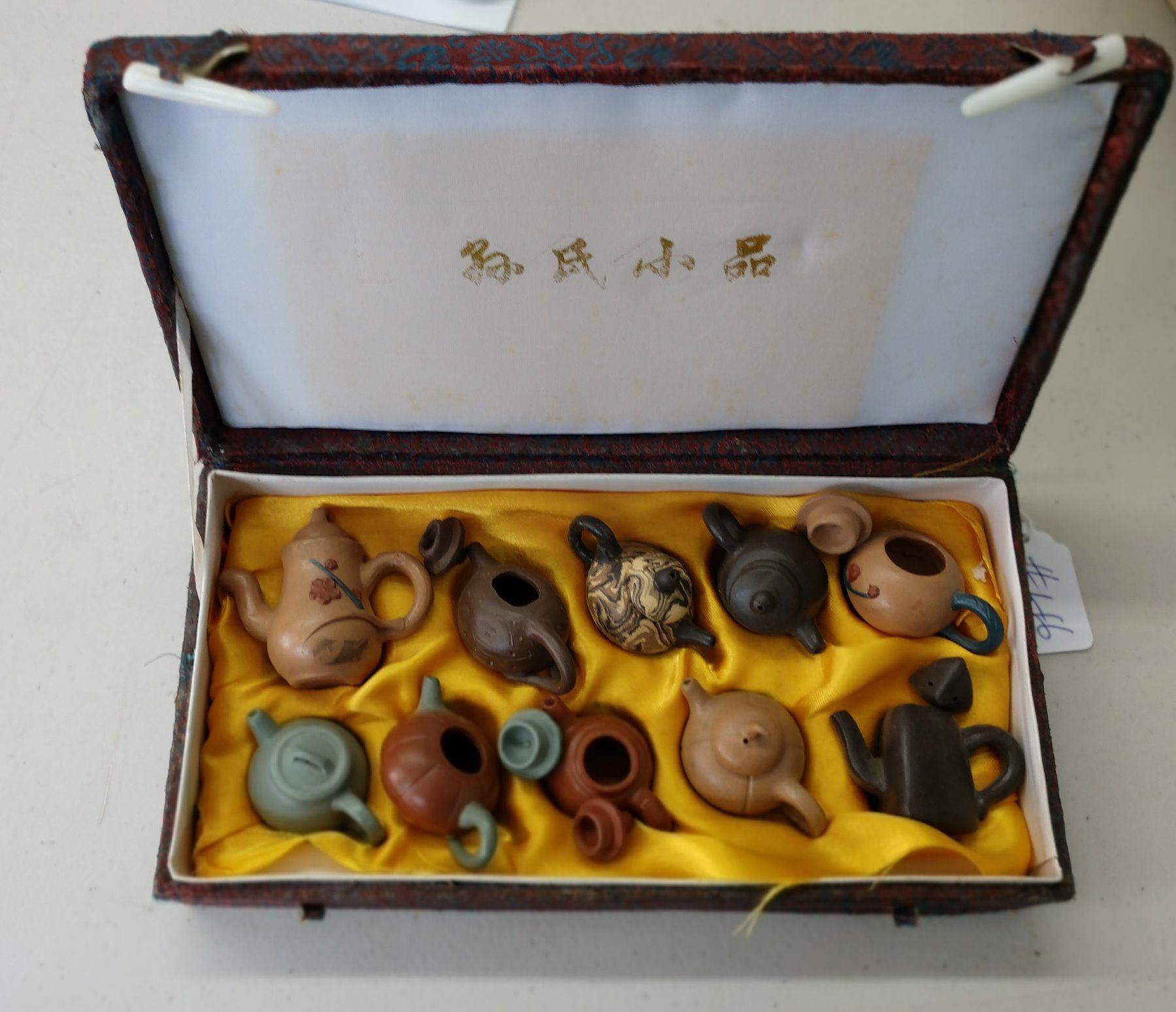 Miniature Tea Pot Collection, modern items. Made of ceramic, the items measure approx. 2" x 2 1/2" each. China. New in box. Condition: Good, see images. Shipping: $22.50 w/insurance and signature.