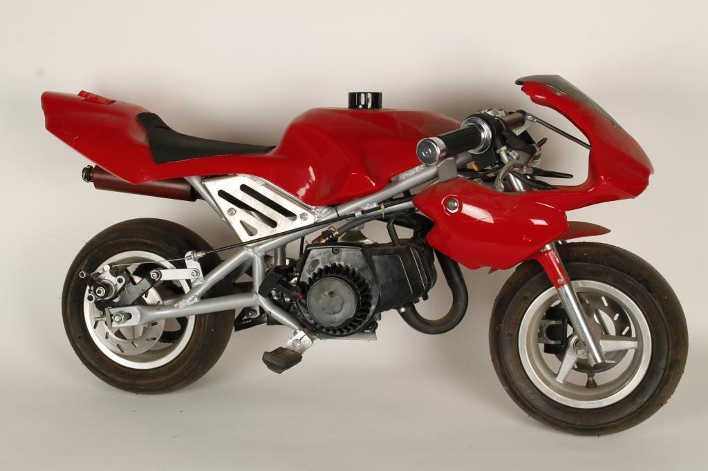 Minature mini bike with no ID marks; unknown condition; has been in storage. Est.: $75-$150.