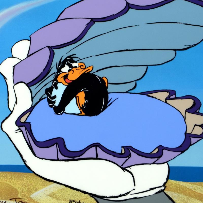 "Mine Mine Mine" is a SOLD OUT limited edition animation cel with hand painted color on sericel outline, dated (1996), numbered and hand signed by Chuck Jones (1912-2002)! The sericel comes with a brilliant full-color background and bears the official seal of Linda Jones Enterprises. Measures approx. 12.5" x 10.5" (background); 10" x 9" (image).