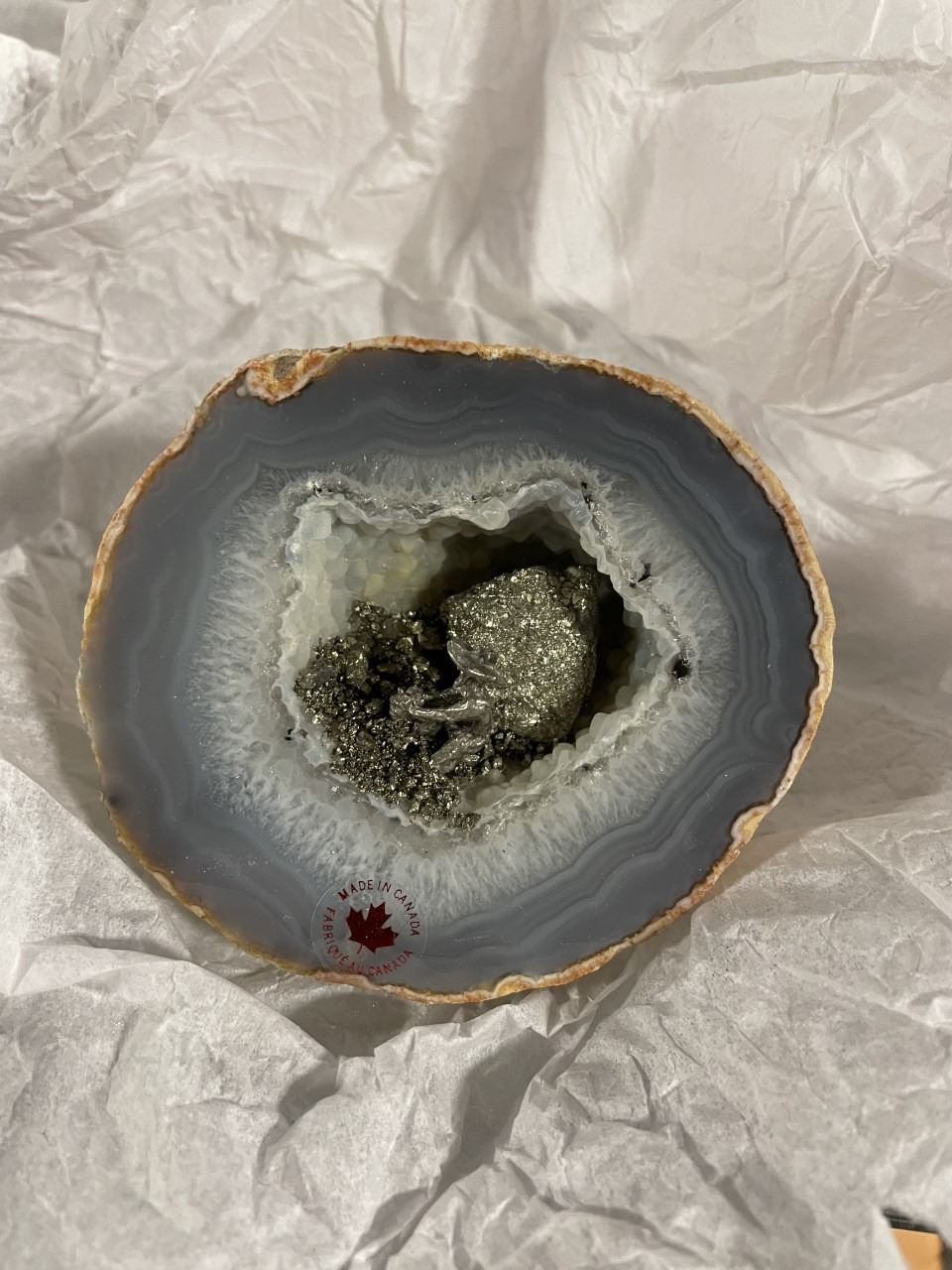Hand-made in Canada by our in-house artisan. Each piece is unique and designed to complement the natural contours and beauty of the geode.