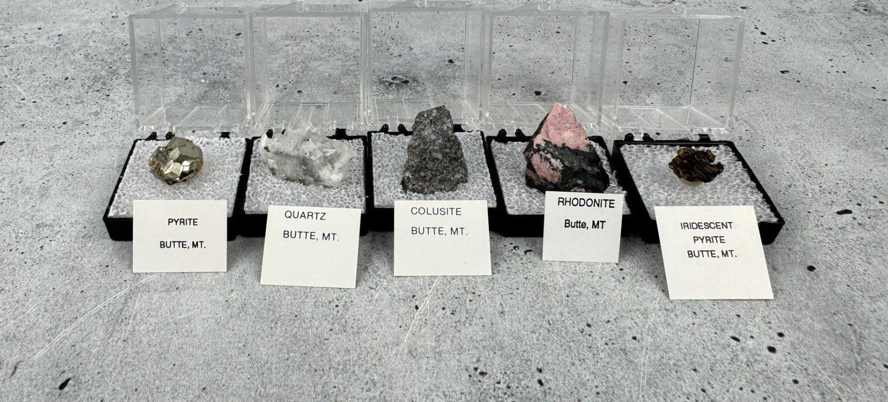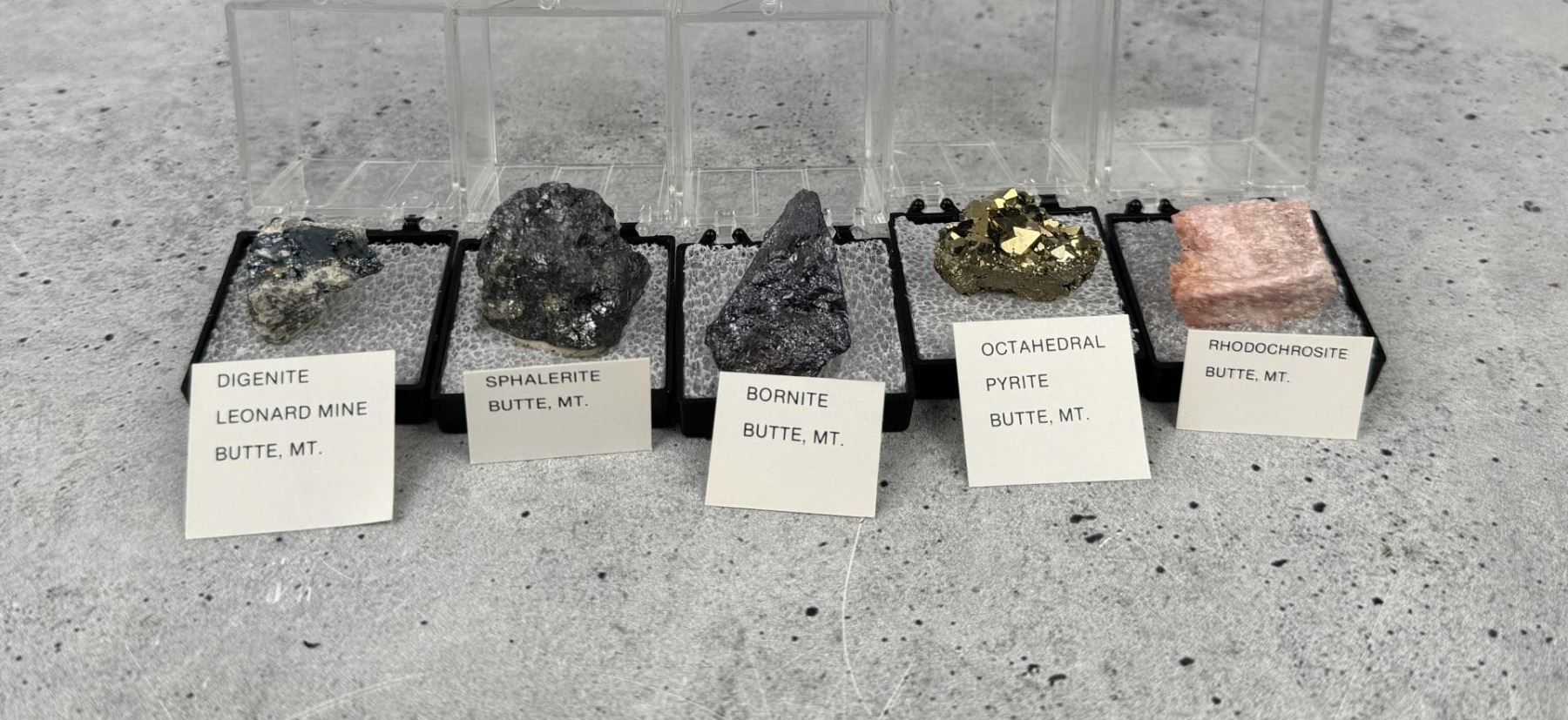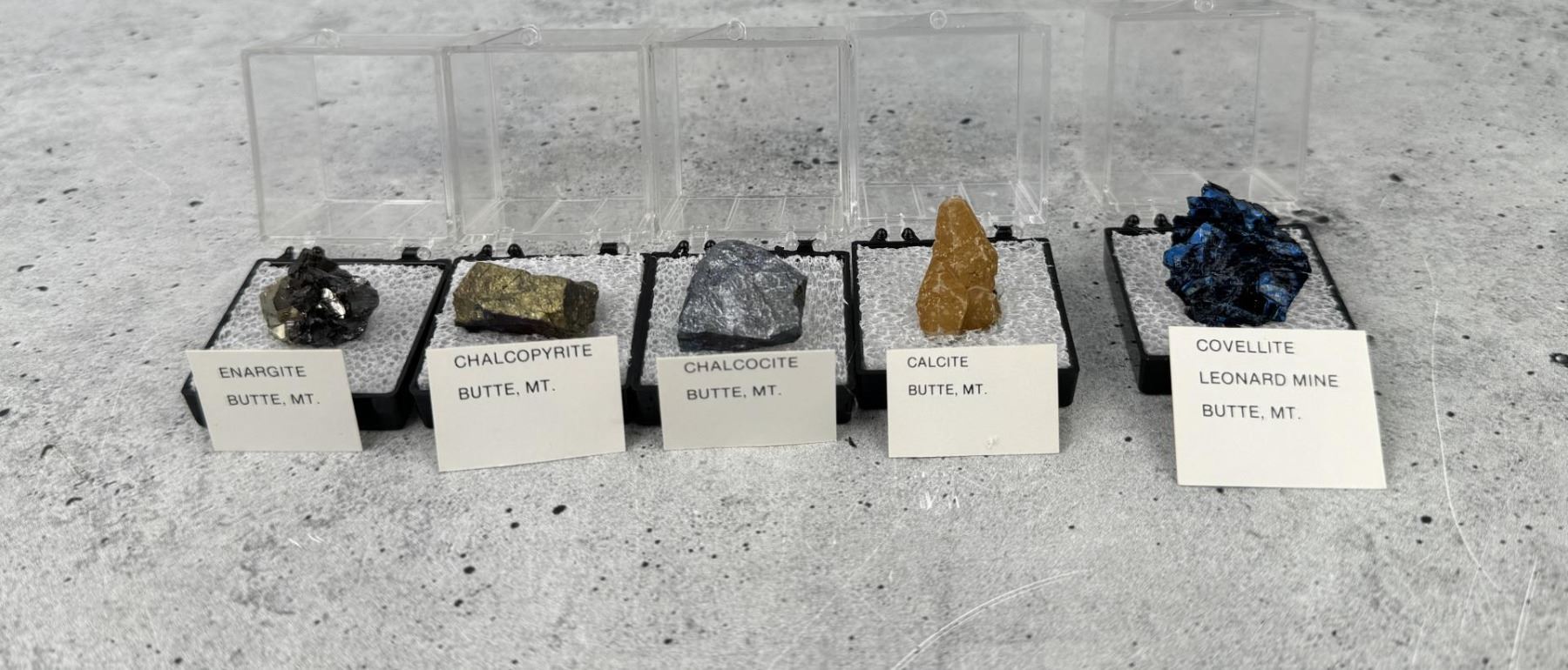Enargite, Chalcopyrite, Calcocite, Calcite, Covellite, Digenite, Sphalerite, Bornite, Pyrite, Rhodochrosite, Quartz, Colusite, Rhodonite, Iridescent Pyrite. Provenance: From the Estate of Kitty's Copper Shop Butte Montana.