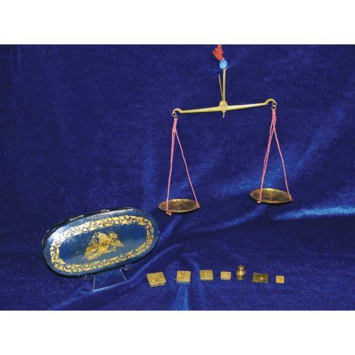 Miners Gold Rush Gold Scale, complete with 7 troy dwts weights. In original blue tin, very good condition. 5 X 1 X 2 1/4 inches.