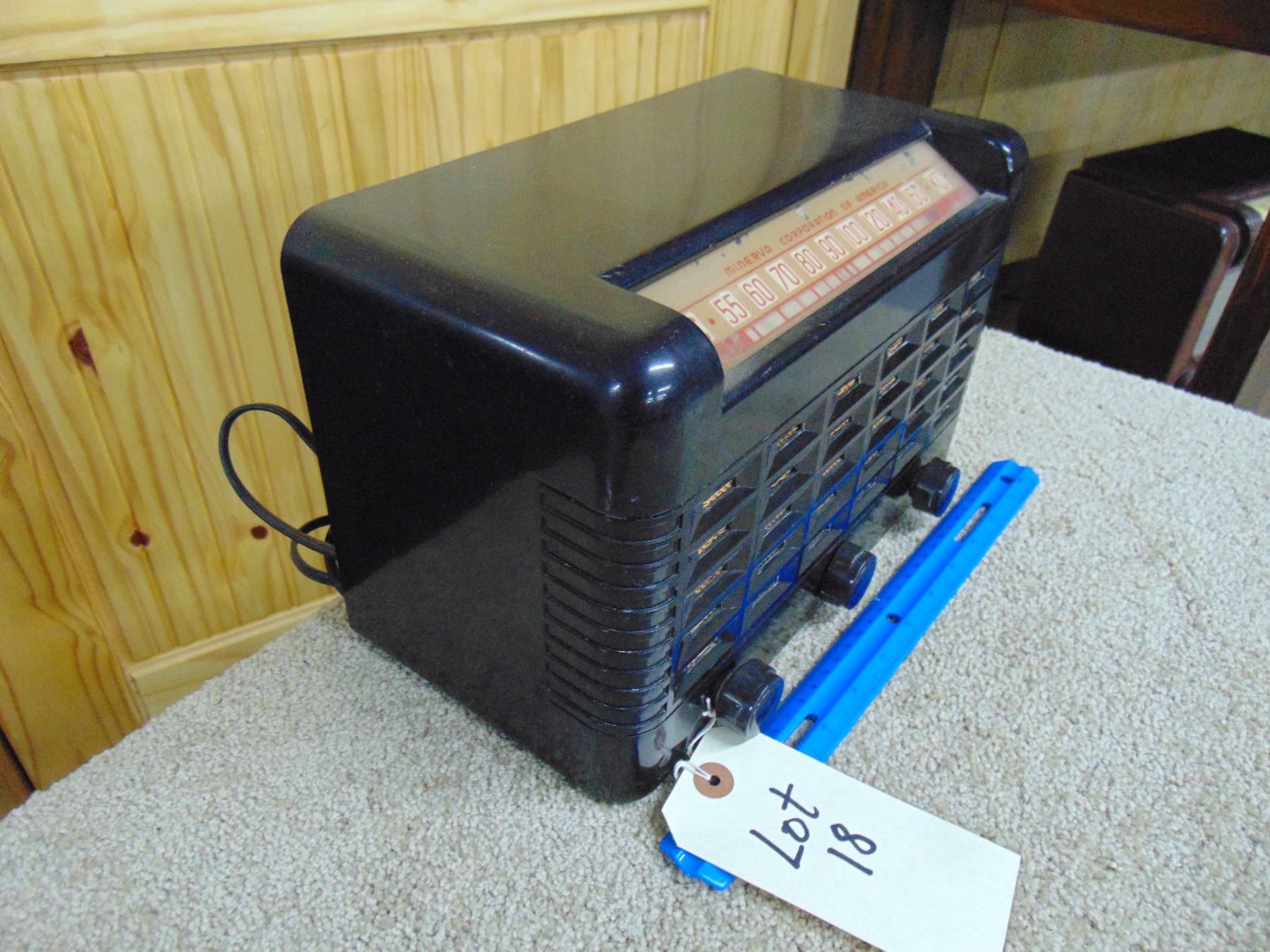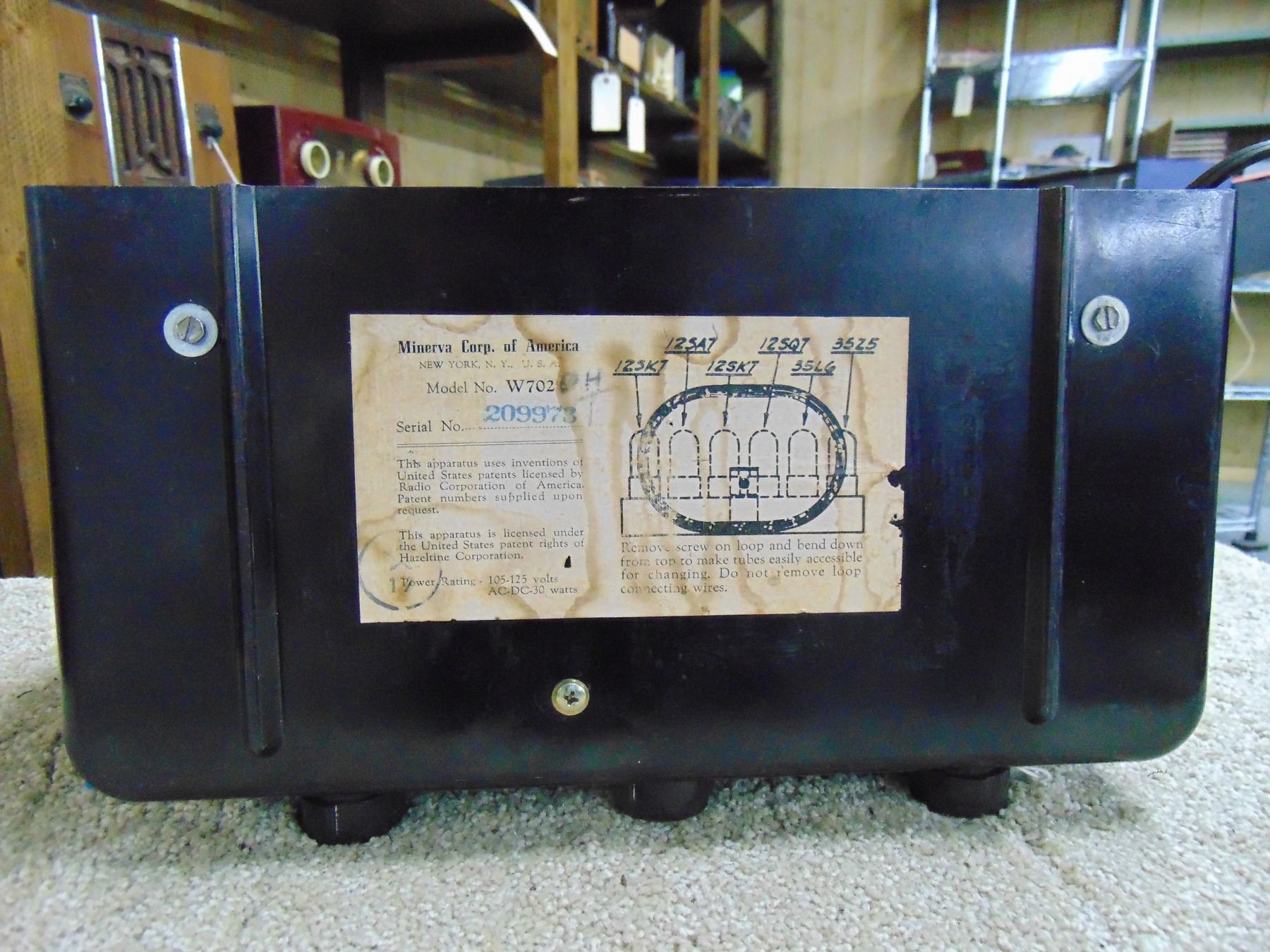 Minerva black bakelite table set; model W702; no cracks; nice; works
