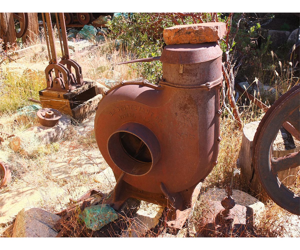equipment, pump, shieve wheel, artifacts 2 ore car wheels, hoist gears Bud Bassett Collection - HKA#66285