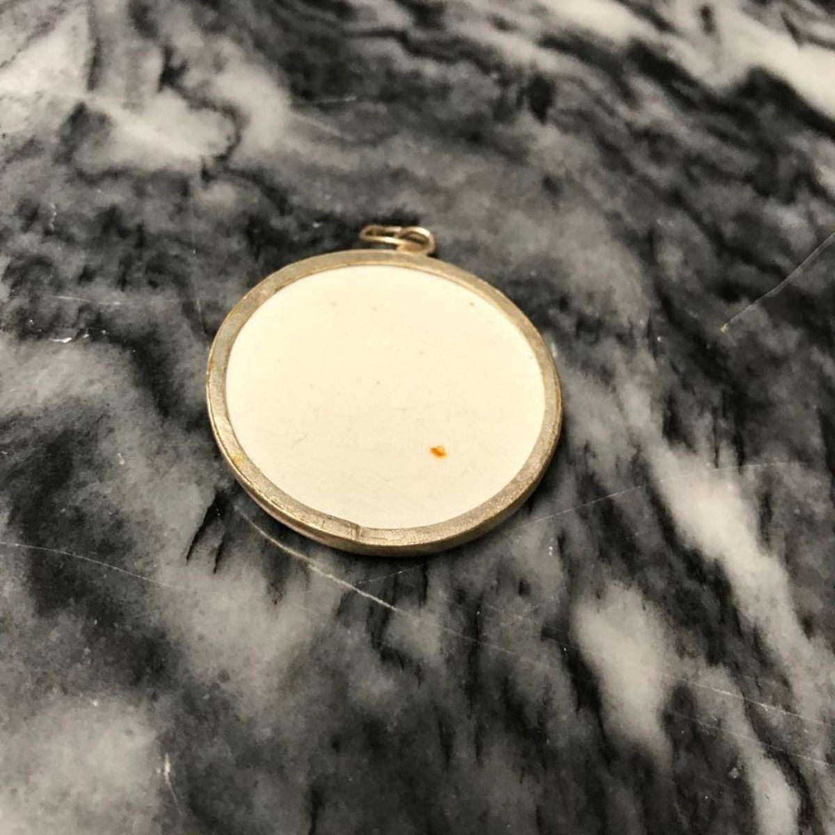 Hand-painted pendant of a bird in flight, wrapped in silver plate bezel, made from a centuries old broken pottery shard, discovered at an archaeological dig at an old porcelain factory that operated from 300 to 900 years ago on the yangtze river in China. Nice, wearable 1 1/2" D. Â