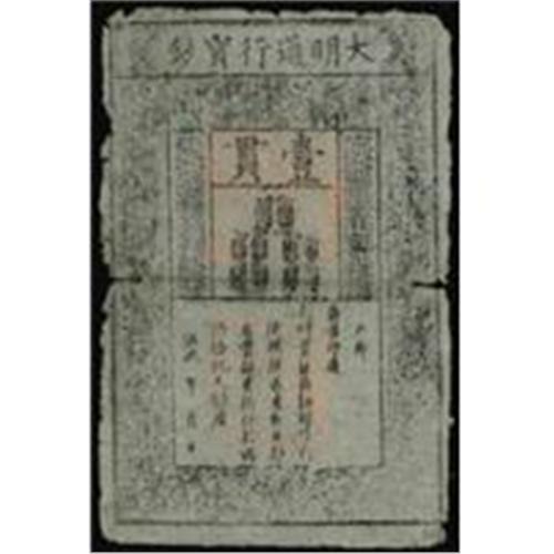 <style type="text/css"> body, td, th { font-family: Arial, Helvetica, sans-serif; font-size: 12px; color: #482424; margin: 0px; padding: 0px; } #header { background-image: url(http://www.bowersandmerena.com/ebay/images/template_v3_01.gif); clear: both; background-color: #590303; border-top-width: 2px; border-top-style: solid; border-top-color: #B38C4F; } #header #header_wrapper { height: 75px; clear: both; width: 800px; margin-right: auto; margin-left: auto; background-image: url(http://www.bowersandmerena.com/ebay/images/template_v3_03.gif); background-repeat: no-repeat; background-position: right; color: #F3EDCC; } #header #header_wrapper #header_logo { float: left; height: 75px; width: 444px; background-image: url(http://www.bowersandmerena.com/ebay/images/template_v3_02.gif); background-repeat: no-repeat; font-size: 10px; text-transform: capitalize; color: #B38C4F; } #header #header_wrapper #header_right { float: left; height: 75px; width: 356px; text-align: right; } #header #header_wrapper #header_right #headerLoginBtn { margin-bottom: 30px; } #header #header_wrapper #header_right input#txtSearch { color: #B49056; border: 1px solid #B49056; width: 175px; padding-top: 3px; padding-right: 3px; padding-bottom: 4px; padding-left: 3px; } #nav { height: 37px; background-image: url(http://www.bowersandmerena.com/ebay/images/template_v3_05.gif); clear: both; } #nav #nav_wrapper { height: 35px; width: 800px; margin-right: auto; margin-left: auto; border-left-width: 1px; border-left-style: solid; border-left-color: #B38C4F; } #nav #nav_wrapper a { padding-right: 15px; padding-left: 15px; border-right-width: 1px; border-right-style: solid; border-right-color: #B38C4F; height: 25px; padding-top: 10px; display: block; float: left; text-decoration: none; font-weight: bold; color: #5D0303; } #nav #nav_wrapper a:hover { color: #B38C4F; } #nav #nav_wrapper #search { float: right; padding-top: 7px; } #nav #nav_wrapper #search #txtSearch { font-family: Arial, Helvetica, sans-serif; font-size: 10px; text-transform: uppercase; color: #D2AE75; border: 1px solid #B38C4F; padding: 3px; } #content_bgd { background-image: url(http://www.bowersandmerena.com/ebay/images/template_v3_09.gif); background-repeat: repeat-y; background-position: center; padding-top: 15px; padding-bottom: 15px; background-color: #FBFBDB; } #content_wrapper { clear: both; height: auto; width: 800px; margin-right: auto; margin-left: auto; } .LotDetailWhite { line-height:normal; font-size:13px; font-family: arial,helvetica,sans-serif; color: White; font-weight: bold; } .LotDetailInformation { line-height:normal; font-size: 13px; font-family: arial,helvetica,sans-serif; } .LotDetailMessage { line-height:normal; font-size: 13px; font-family: arial,helvetica,sans-serif; color: red; } } tr.HeaderAuctionTitle td { color: #000000; font-weight: bold; padding: 2px; background-image: url(http://www.bowersandmerena.com/ebay/images/template_v3_05.gif); background-repeat: repeat-x; border-bottom-width: 1px; border-bottom-style: solid; border-bottom-color: #B38C4F; } table.AuctionSummary a, table.AuctionSummary a:link, table.AuctionSummary a:visited { color: #0000FF; text-decoration: none; } } td.tableHeaderLeft { border-left-width: 1px; border-left-style: solid; border-left-color: #B38C4F; } td.tableHeaderRight { border-right-width: 1px; border-right-style: solid; border-right-color: #B38C4F; } td.tableCellMiddle { border-left-width: 1px; border-left-style: solid; border-left-color: #B38C4F; border-right-width: 1px; border-right-style: solid; border-right-color: #B38C4F; padding: 5px; } tr.footer td { border-top-width: 1px; border-top-style: solid; border-top-color: #B38C4F; } </style> </head> <body> <div id="header"> <div id="header_wrapper"> <div id="header_logo"> </div> <div id="header_right"> </div> </div> </div> <div id="nav"> <div id="nav_wrapper"> <a href="http://www.bowersandmerena.com">Our eBayLive Auctions</a> <a href="#PaymentInfo">Payment Information</a> <a href="#ShippingInfo">Shipping Information</a> <a href="#About">About Bowers and Merena</a> </div> </div> <div id="content_bgd"> <div id="content_wrapper"> <table width="100%" border="0" cellpadding="5" cellspacing="0" class="AuctionSummary"> <tbody> <tr class="HeaderAuctionTitle" style="height: 25px;"> <td align="left" class="tableHeaderLeft" > </td> <td align="center" class="tableHeaderRight"> <span style="font-size: large;">Lot #1. China--Empire. Ming Dynasty.</span> </td> </tr> <tr> <td colspan="3" class="tableCellMiddle"> P-AA10, One Kuan 1368-99. 10 strings of cash coins on mulberry bark paper. Portions of vermilion seals visible. Despite edge roughness and small split at right center, a very desirable example of the earliest collectible note in overall VG-Fine condition. It is said that a "bundle" of these notes was discovered under a statue of Buddha during the Boxer Rebellion. They have become quite scarce in today's expanding market.