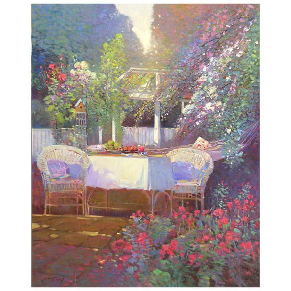 "Lazy Afternoon" is an original oil painting on stretched canvas by Ming Feng, hand signed by the artist. Includes Letter of Authenticity. Measures approx. 24" x 30" (image). Reference #: 239102