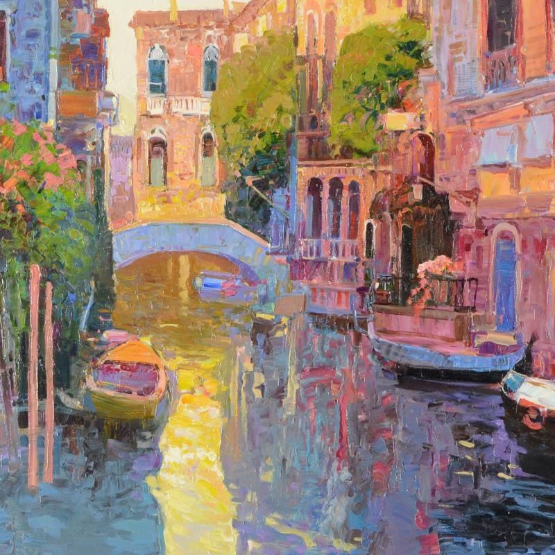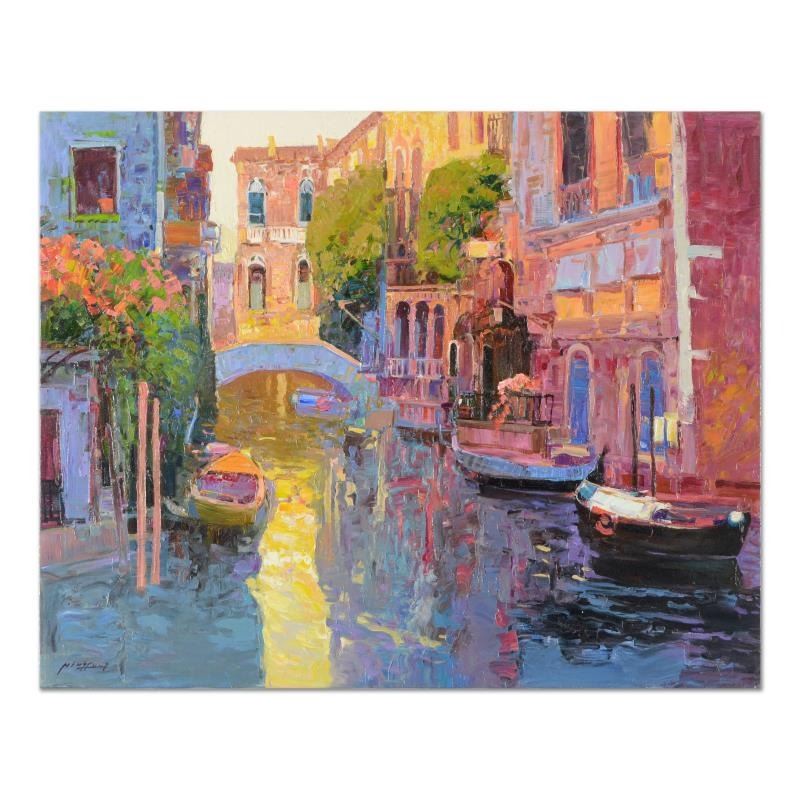 Ming Feng, "Sunlit Canal" Original Oil Painting on Canvas, Hand Signed with Letter of Authenticity.