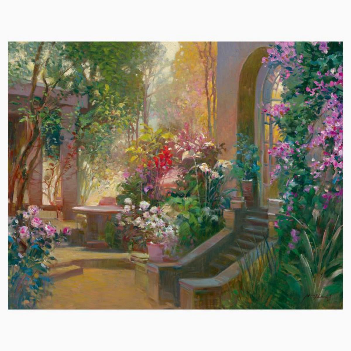 "Sunlit Passage" is a hand embellished limited edition giclee on canvas by Ming Feng, numbered and hand signed by the artist. Includes Letter of Authenticity. Measures approx. 30" x 24" (image). Reference #: 238814.