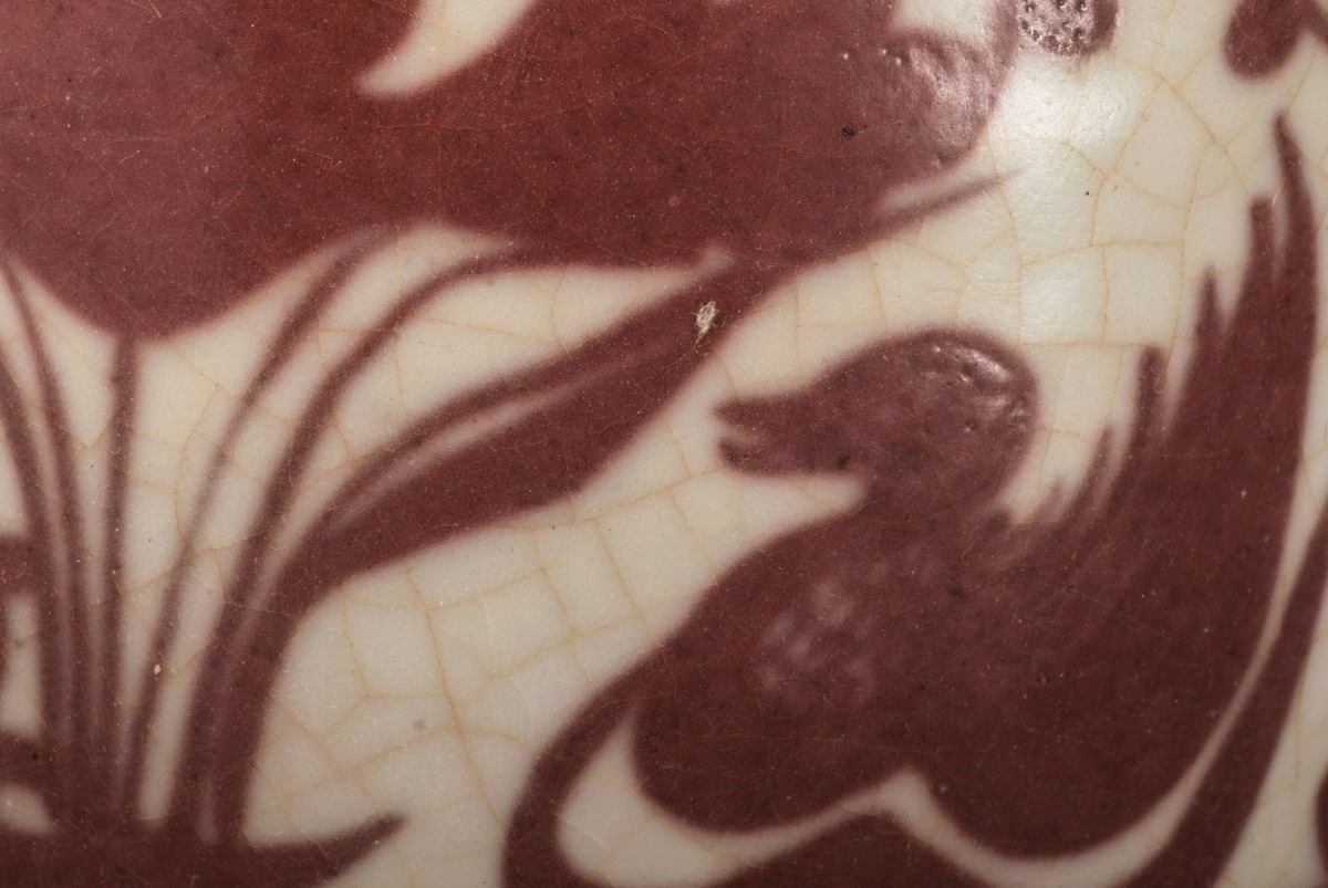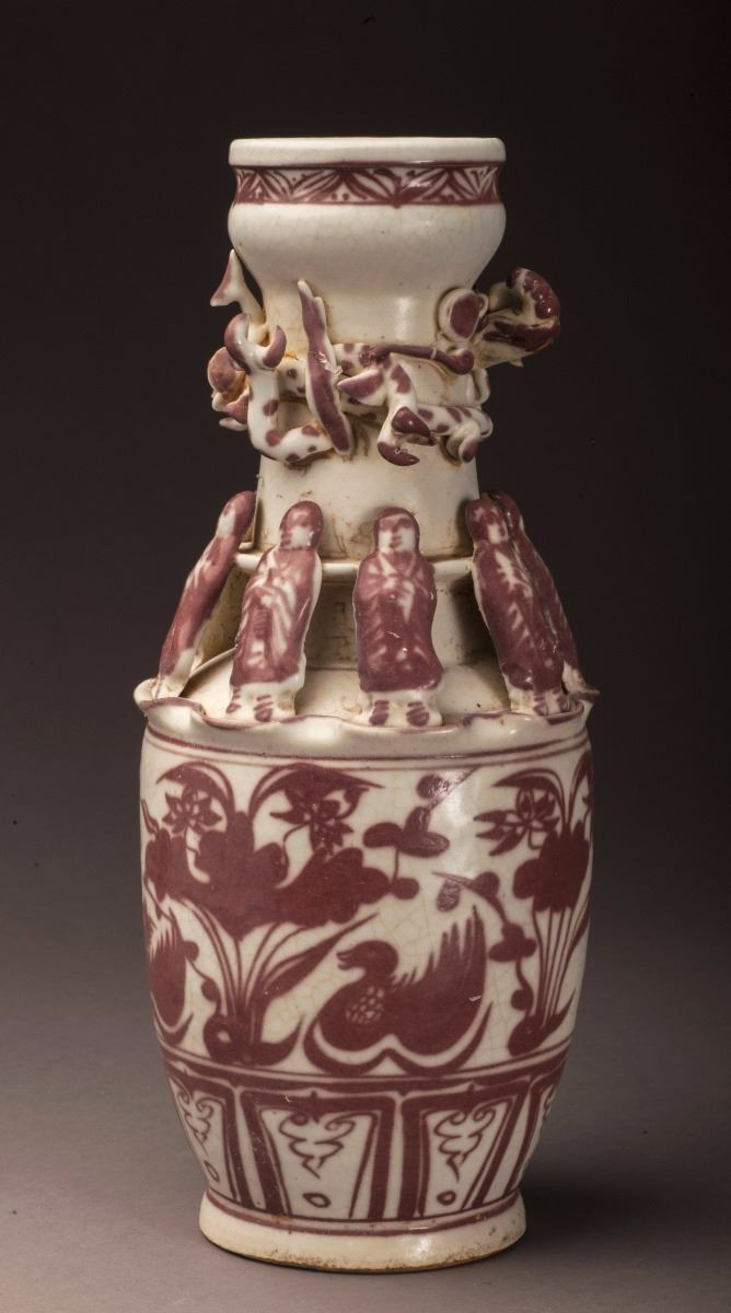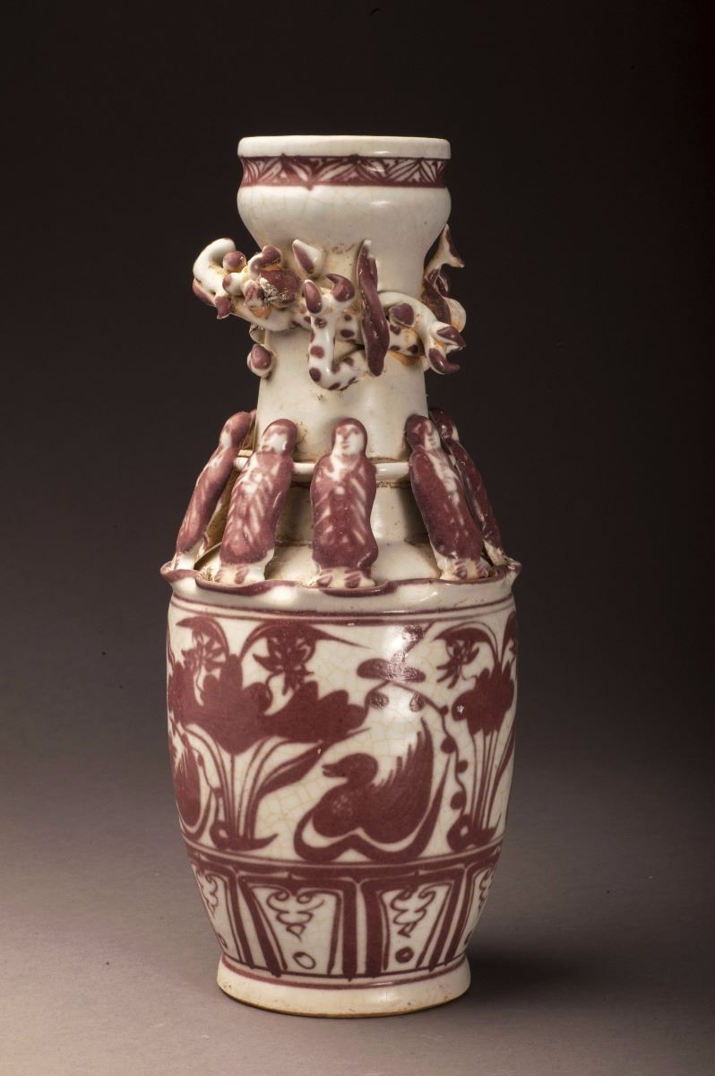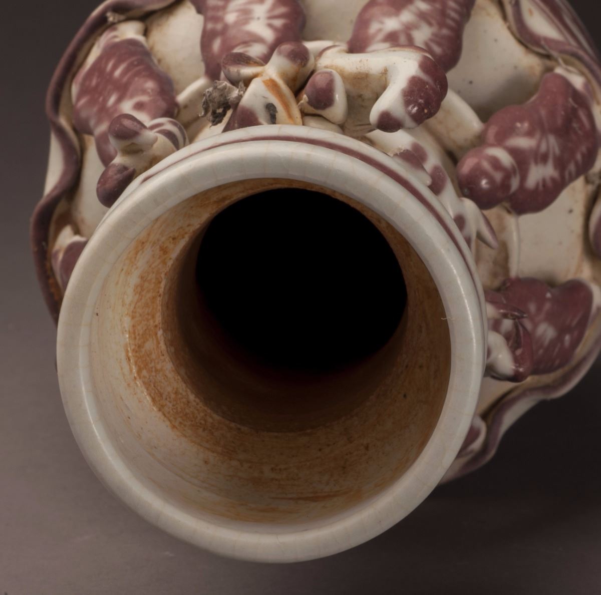 Depicting With The Vivid Red Glazed Flower Patterns At The Finely Potted Cavetto, Decorated With Delicate Designed Features Statue Around The Neck. With A Vivid Chi Long At Neck, With Its Tail Extending To TheHead. Heavily Potted Rim At Mouth.