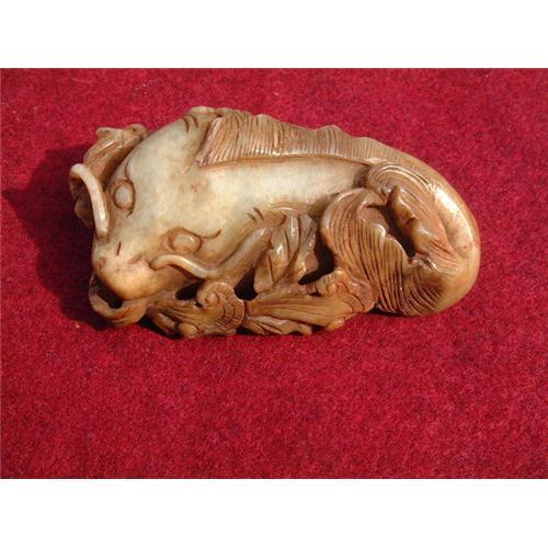 16th.-17th. century celadon jade carving in shape of a fish dragon carrying a ling zhi sprig in its mouth. Provenance: Dr. Veleanu's jade collection, the author of the illustrated collectors' textbook: "Jade, 5000 BC to 1912 AD, Guide to collectors" and the owner of Objets d'Art Uniques Internet store. Estimated value: $2.500.