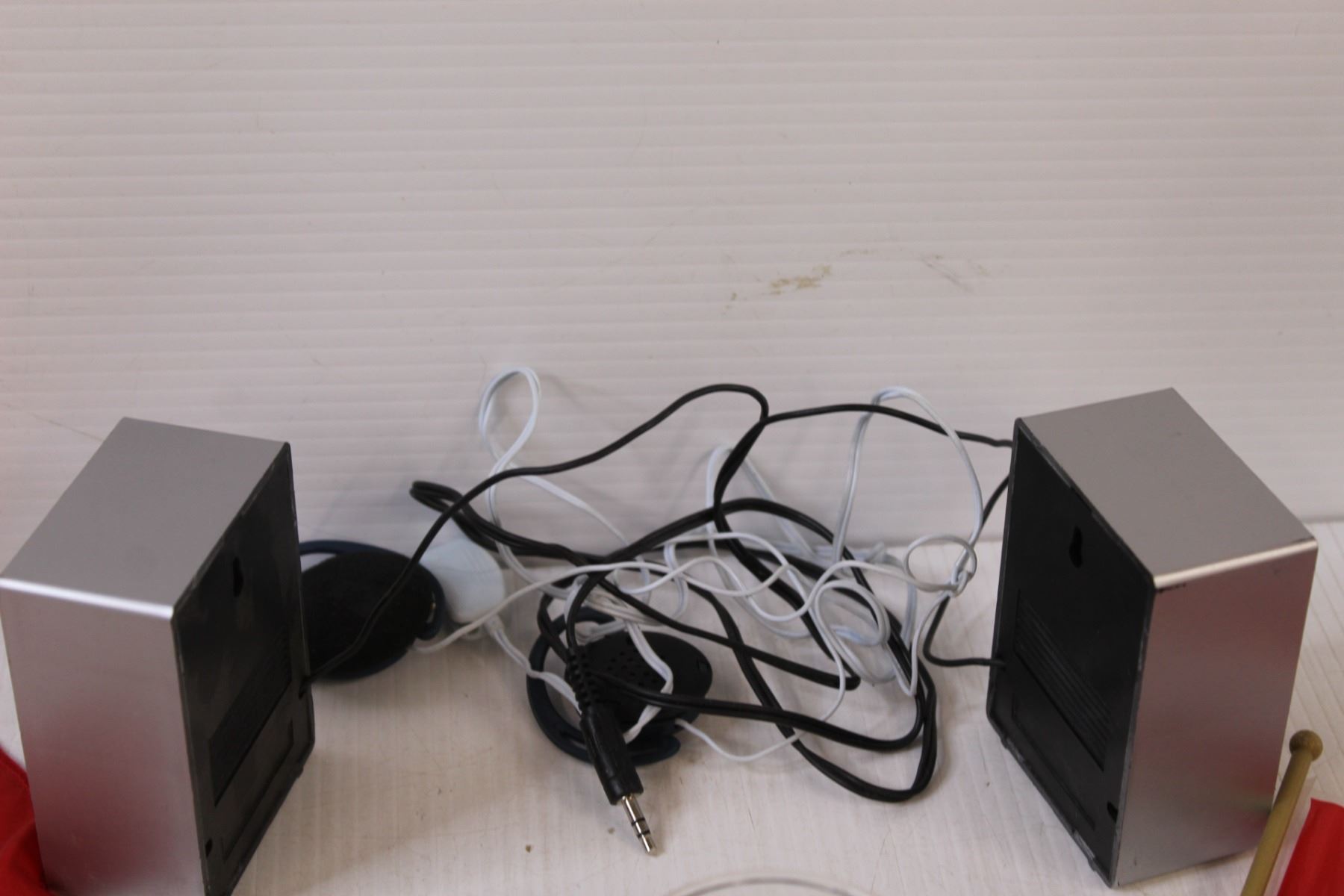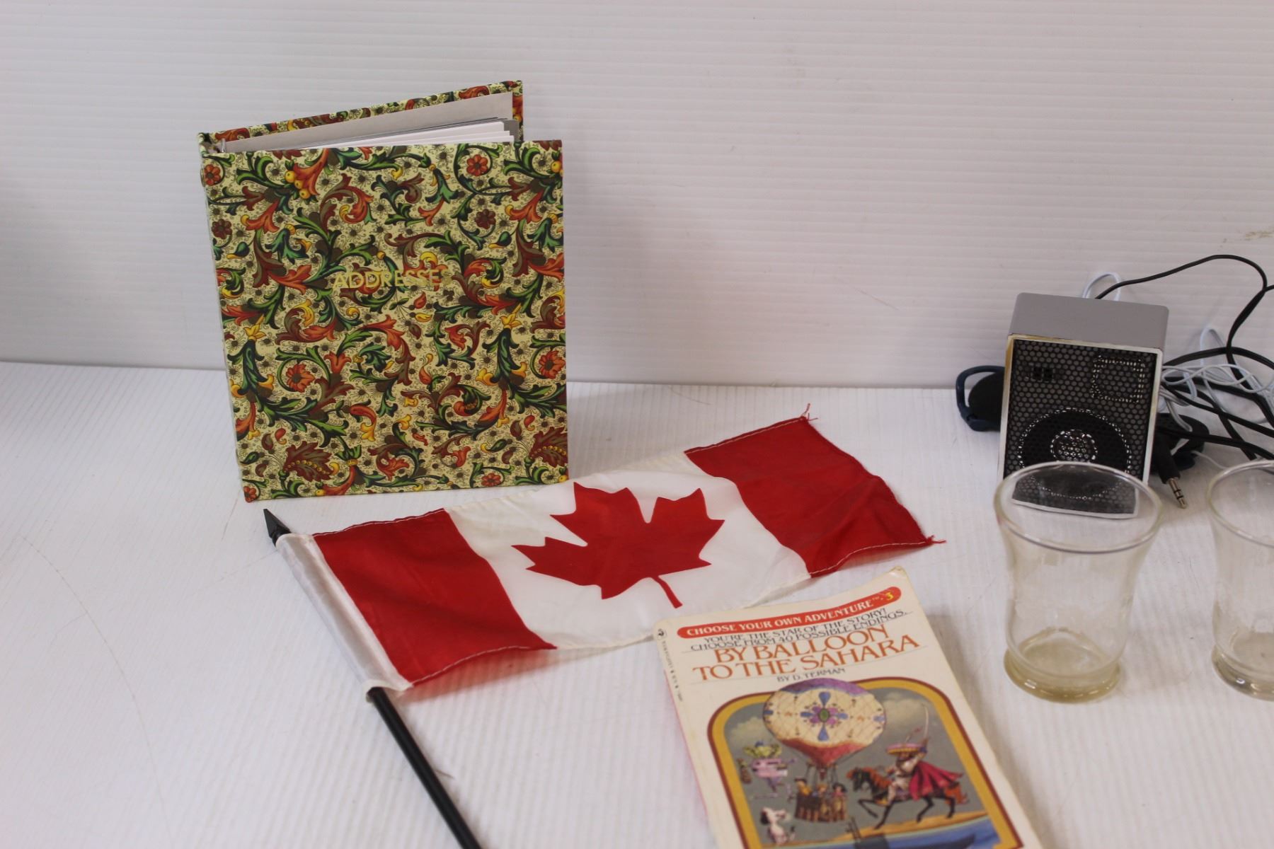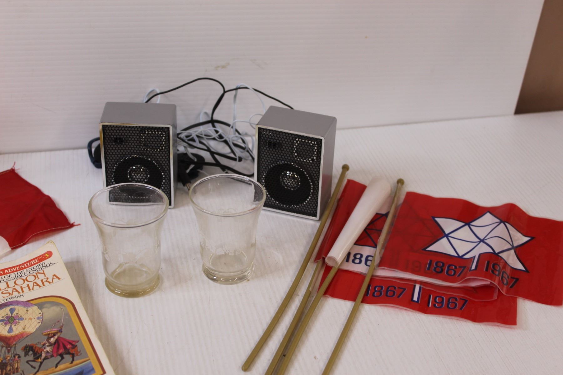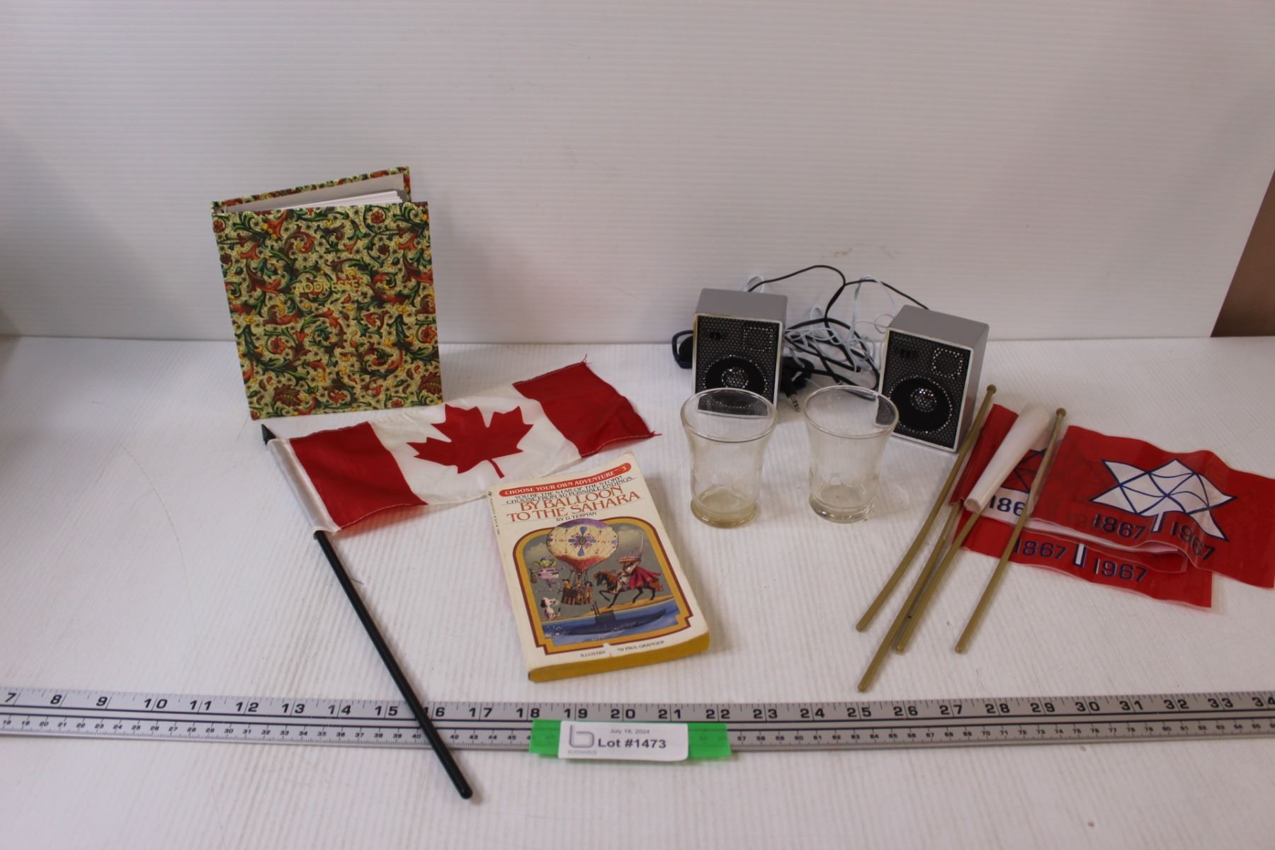 Mini Canadian Flags, Speakers(Untested), Book, Candleholders, Misc.