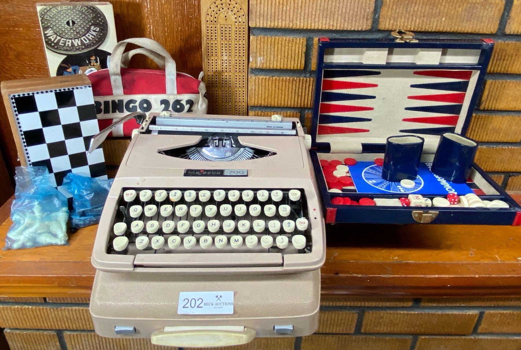 Mini Chess Board, Backgammon, & Majestic 700 Type Writer