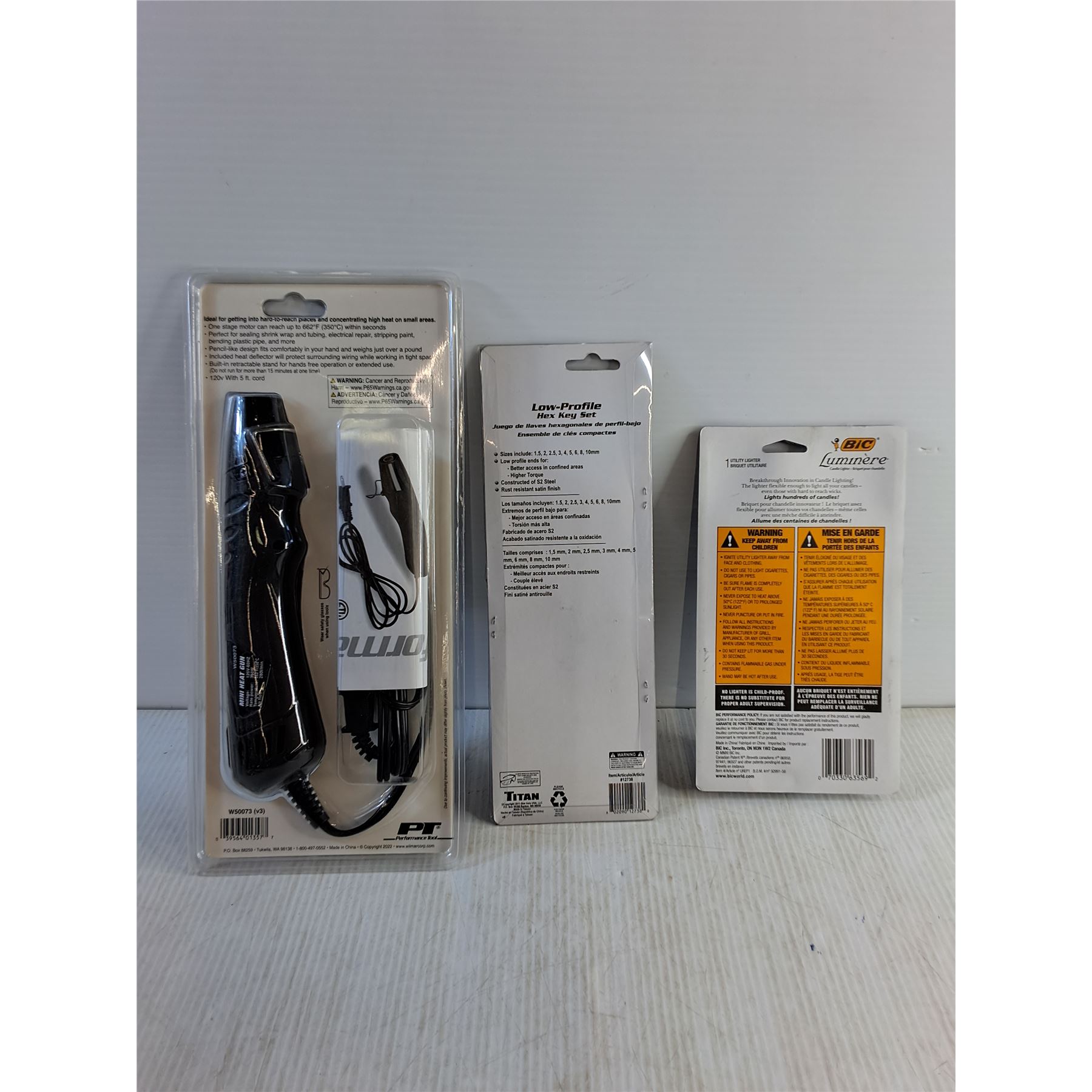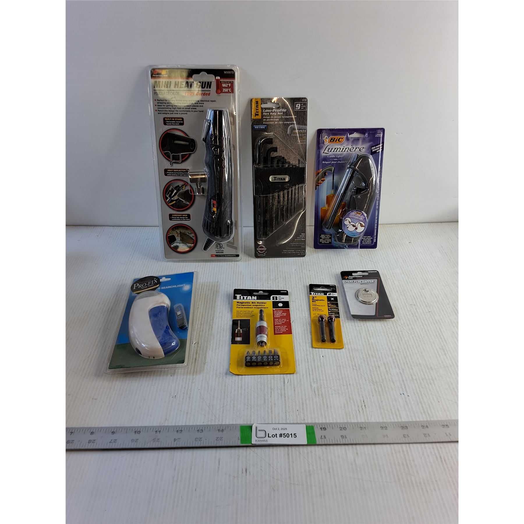 Mini Heat Gun, Titan Hex Key Set, BIC Candle Lighter, Pro-Fix Searchlight, Titan Magnetic Bit Holder