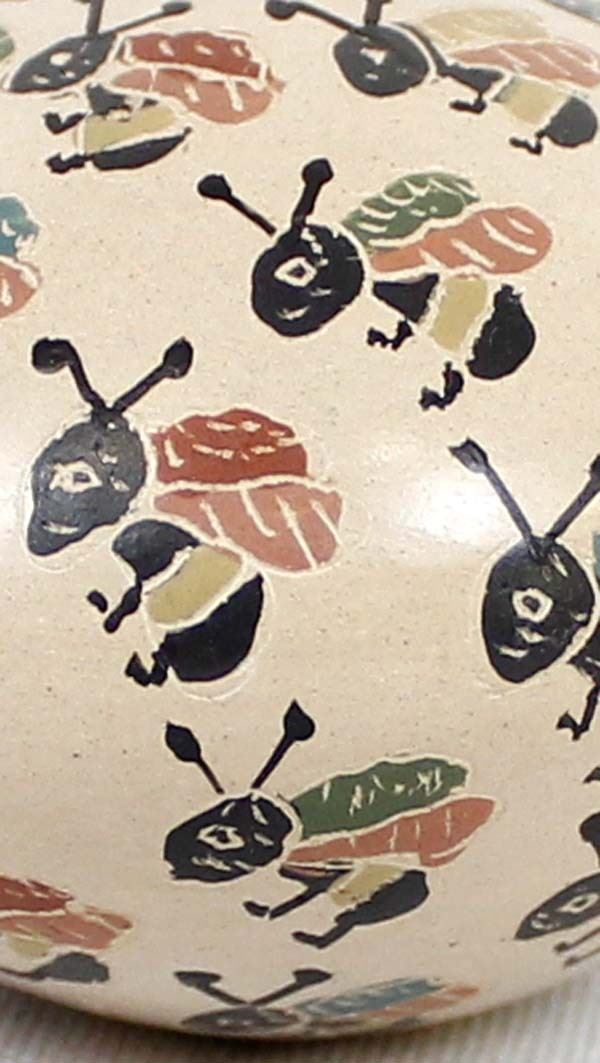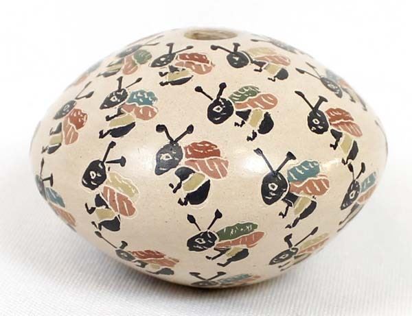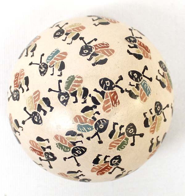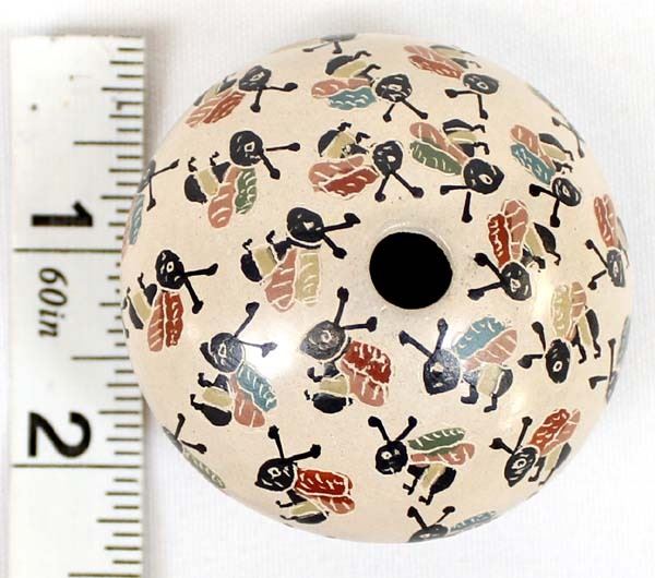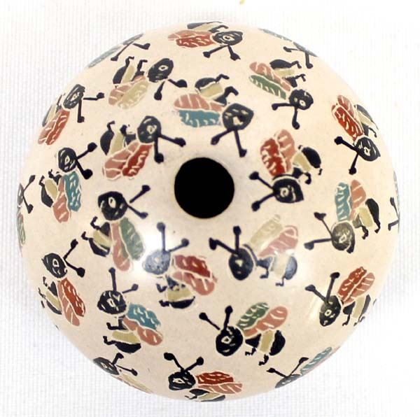 Mini Mata Ortiz Bumble Bee Pottery Seed Jar by renowned artist Celia Lopez. 1 3/4'' x 2''. Celia is known for her butterfly and bee pottery.