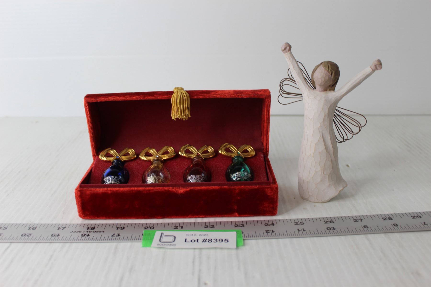 Mini Perfume Bottles and Angel Figurine (Mostly Full)