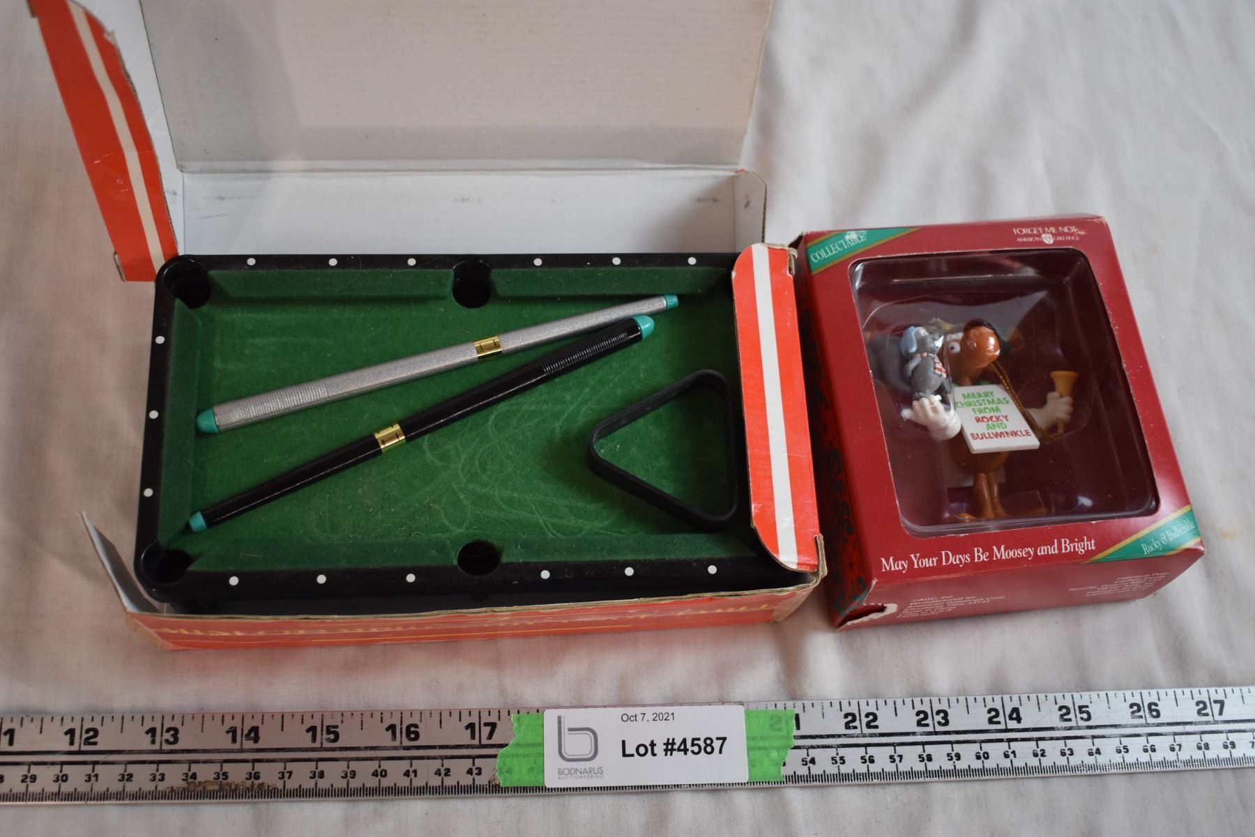 Mini Pool Table and Rocky & Bullwinkle Christmas Ornaments