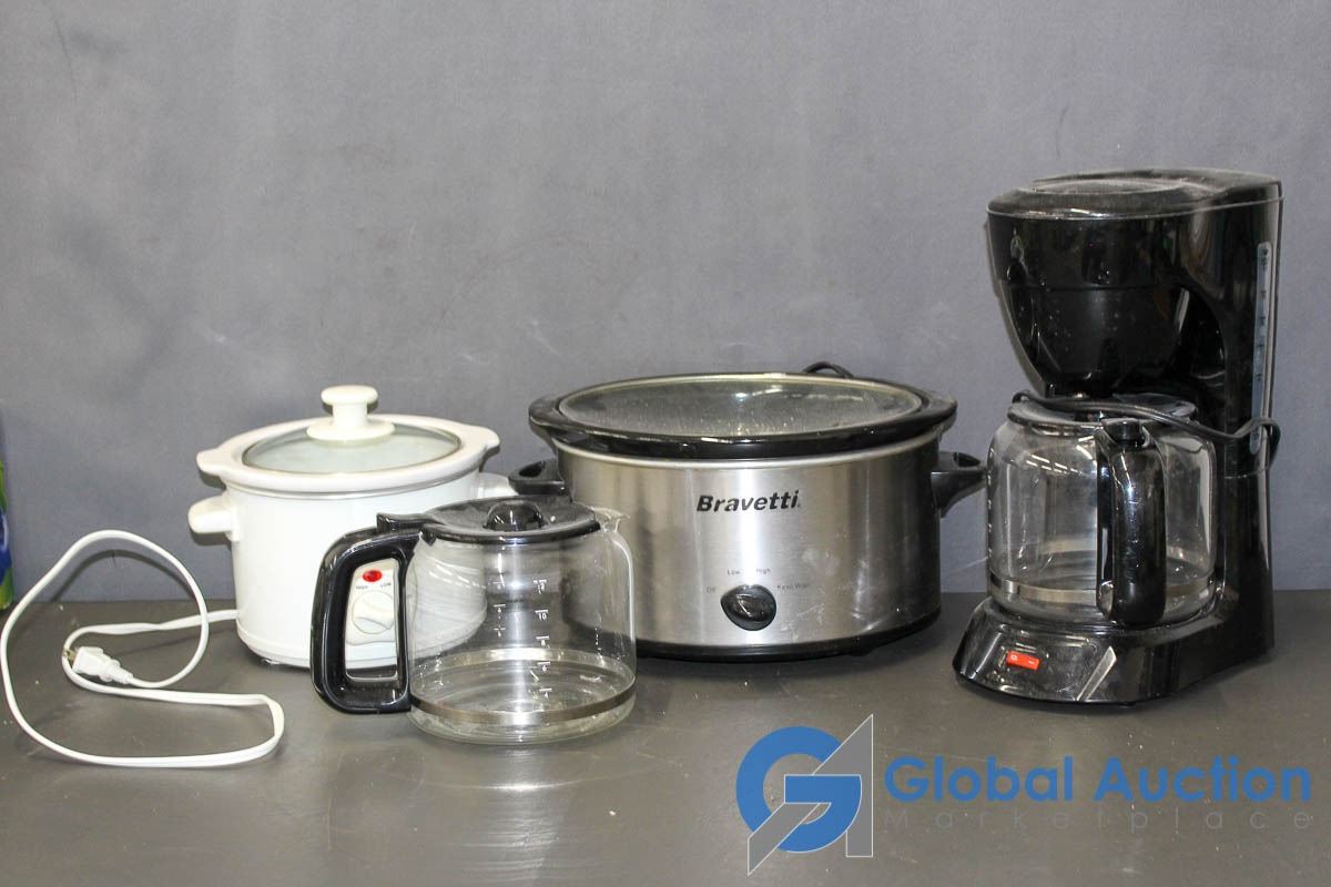 Mini Slow Cooker, Bravetti Small Slow Cooker, & Coffee Maker with Spare Coffee Pot