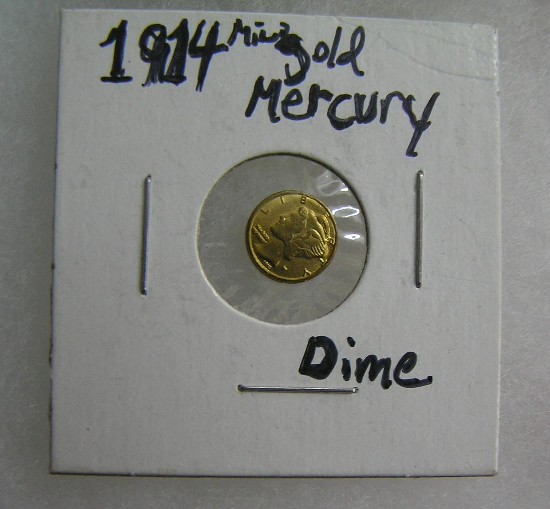 Mini gold Mercury dime dated 1914 est. value $100.00-$125.00
