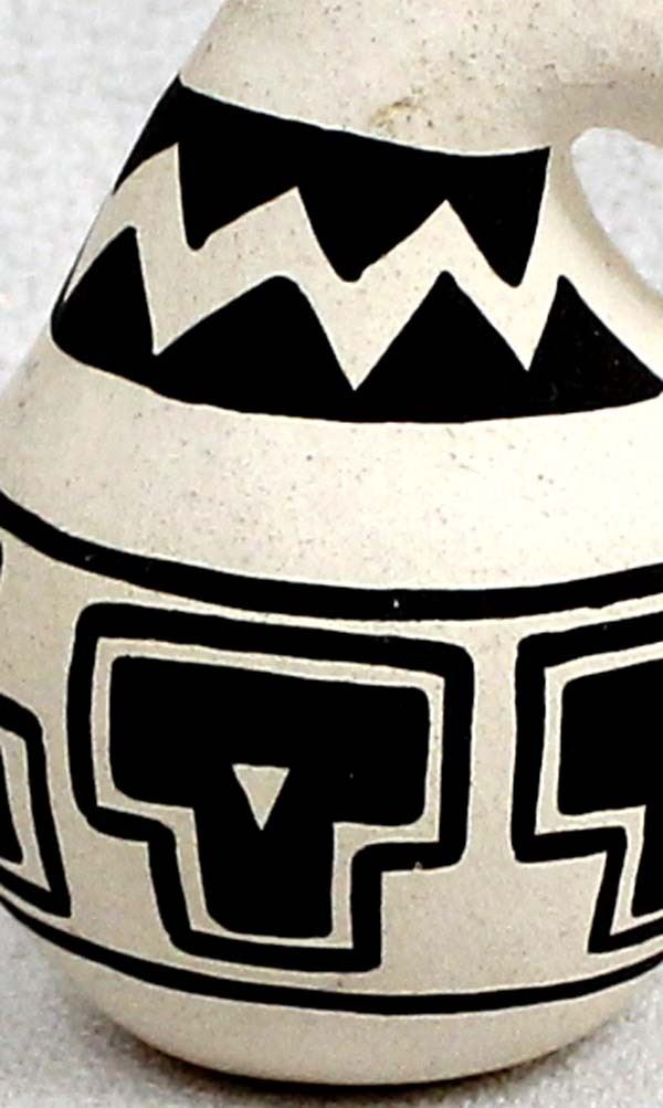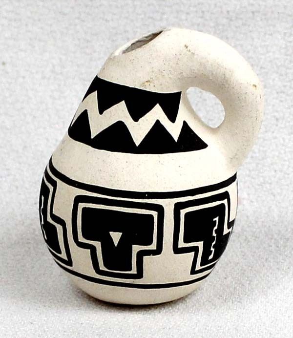 Miniature Aztec Ruins Anasazi Pottery Replica, measures 1'' x 1.5'', on the bottom is the number 33 and initials FL or possible F