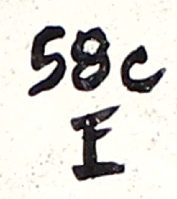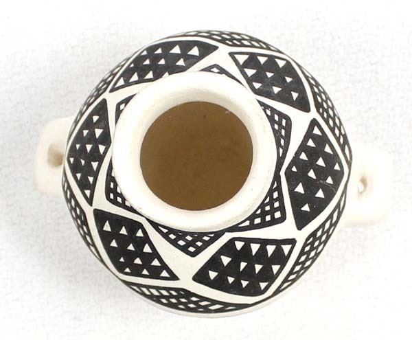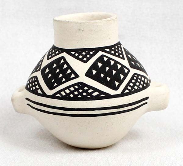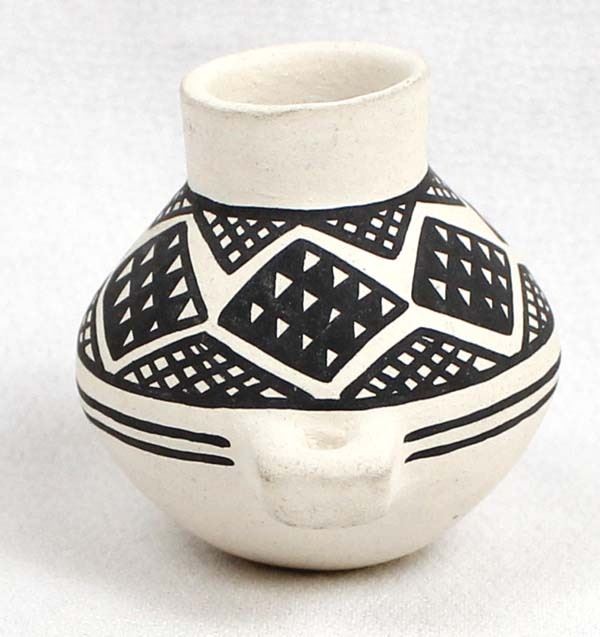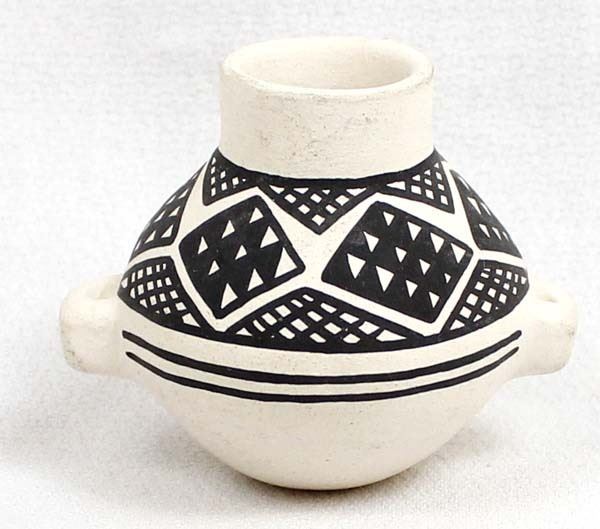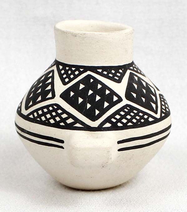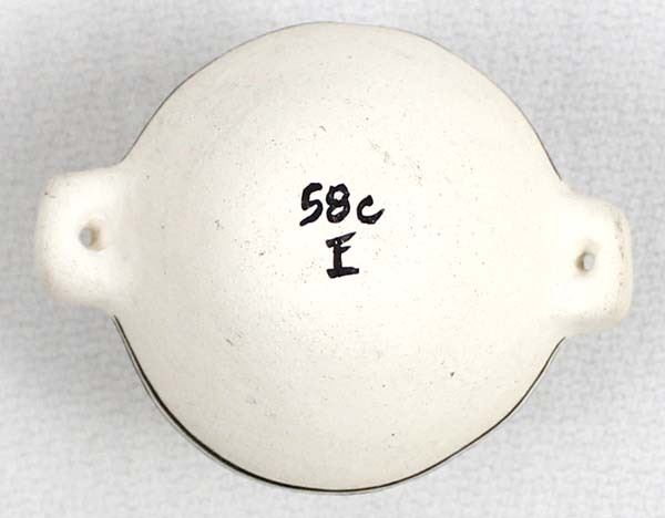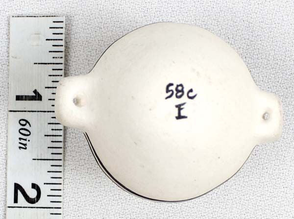 Miniature Aztec Ruins Anasazi Pottery Replica, measures 2'' x 1.5'', on the bottom is the number 58C and initials FL or possible F