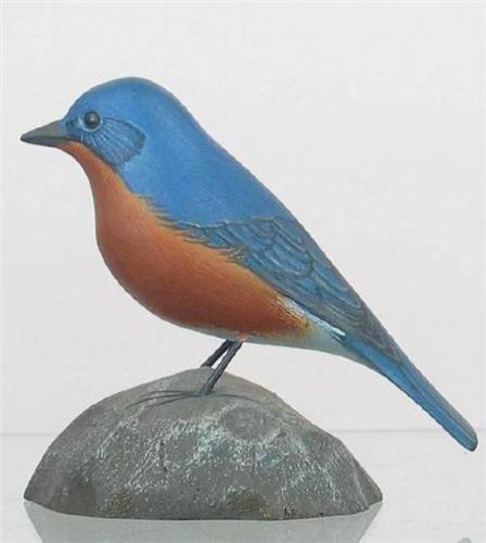 Miniature Bluebird by Jess Blackstone. "Bluebird", #319 and typical JB signature along with collection #28 in a circle in pencil on the bottom of the mount. XOC. (decoy)