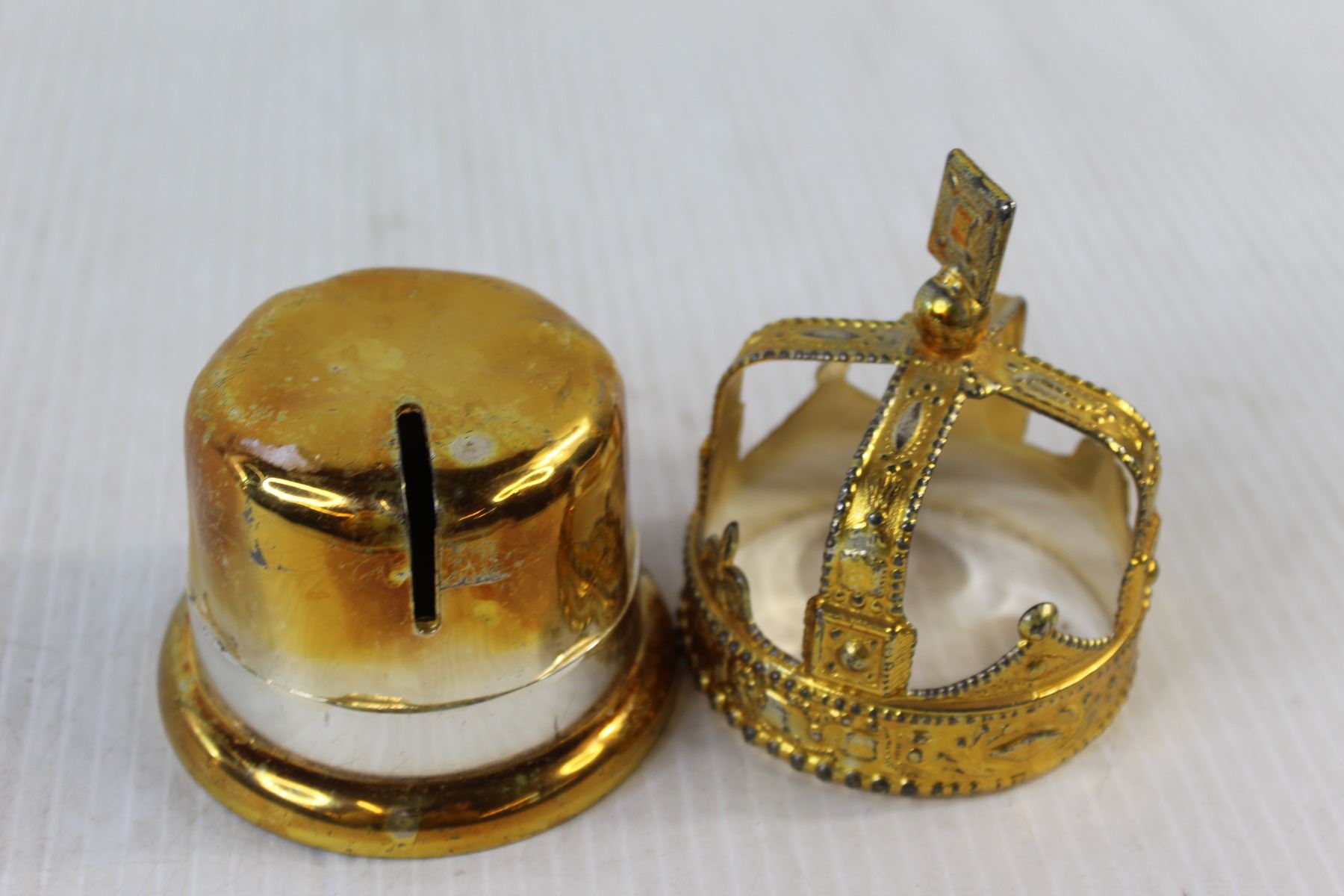 Miniature Brass Crown Coin Bank