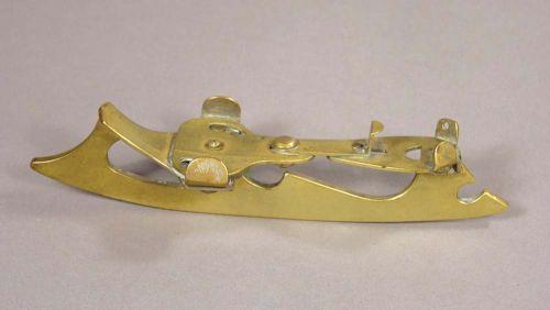 Miniature Brass Ice Skate, no maker. We are not sure if this is for a very small child or a salesman sample or a promotional premium. Very well made and in very good condition. 6 inches long.