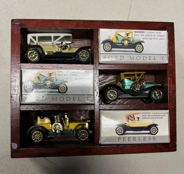 Miniature Cars in Case - Ford Model T, Peerless & More