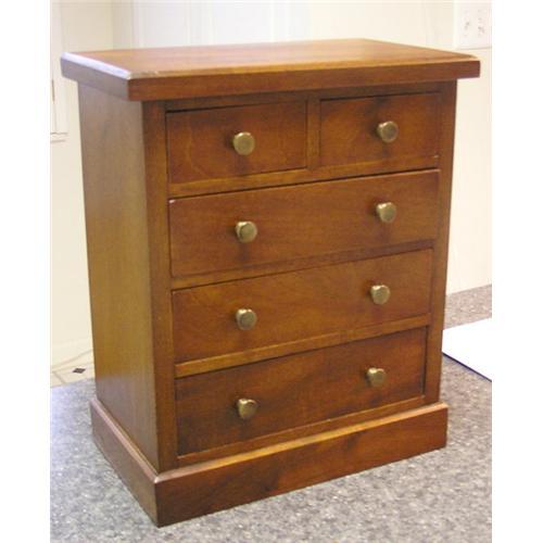 Lovely old walnut miniature chest. Handcrafted, with dovetailed back and drawers. We are not sure whether this was a cabinetmaker's sample, or a chest made for a litte girl's doll furniture.