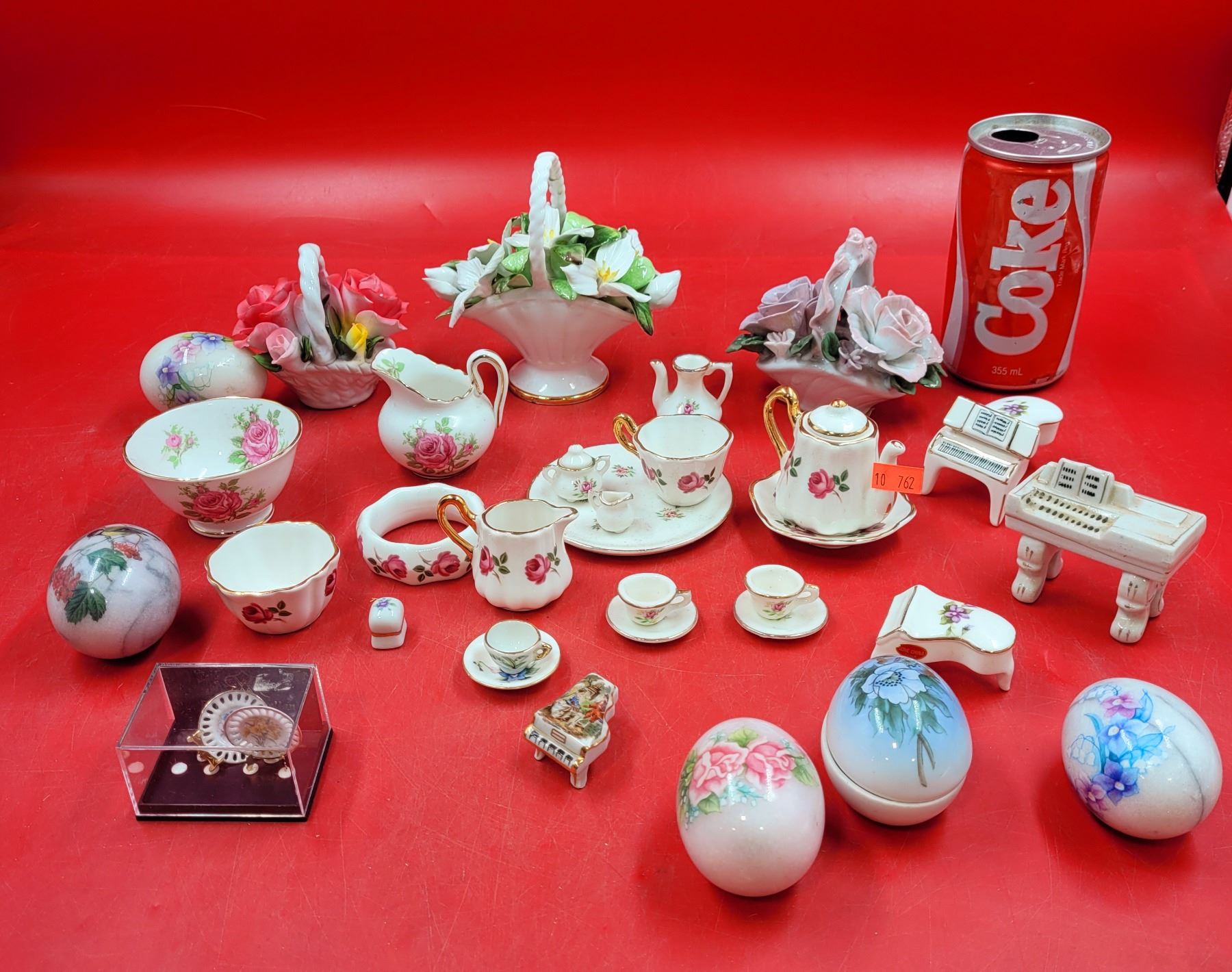 Miniature China Tea Set, Marble Eggs, & China Flowers