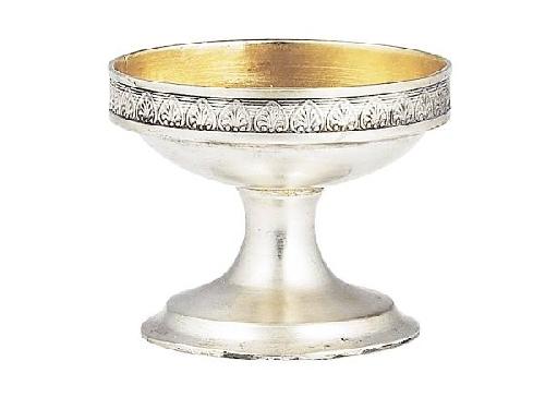 Silver, 28 g, gilt interior. Round, profiled base, rounded row of palmettes, late empire dish. Marked: Pest, 1831, the young Prandtner, József. Brestyánszky: 138, 301. Size: 3.5 cm
