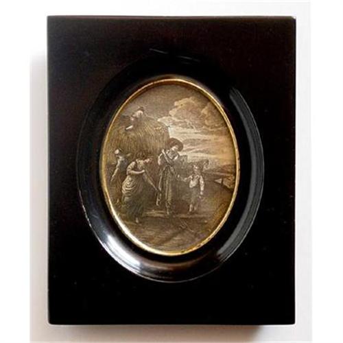 <tr><td>Title: Miniature Engraving of Wheat Harvest</td></tr>