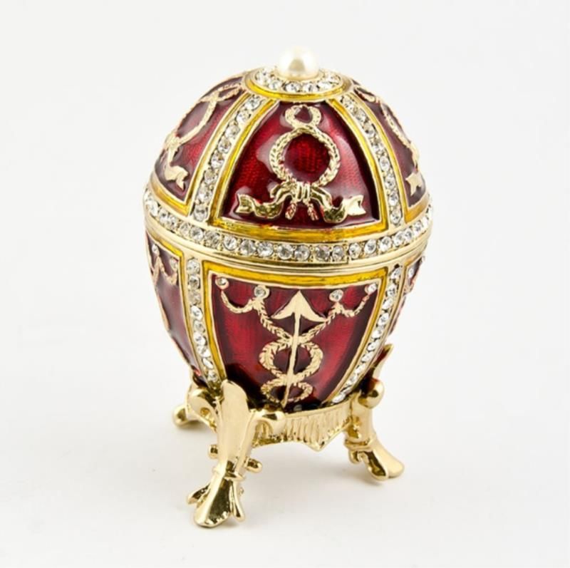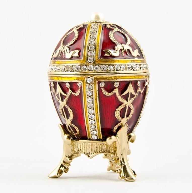 2.5'' (H) X 1.5'' (D) Pewter, Crystals, Enamel Faberge is a trademark of Pallinghurst Resources LLP. This piece of art should not be associated with Pallinghurst Resources LLP, Faberge Limited Co. who acquired the Faberge trademark in 2007. This item is an exacting replication of a piece of priceless value.