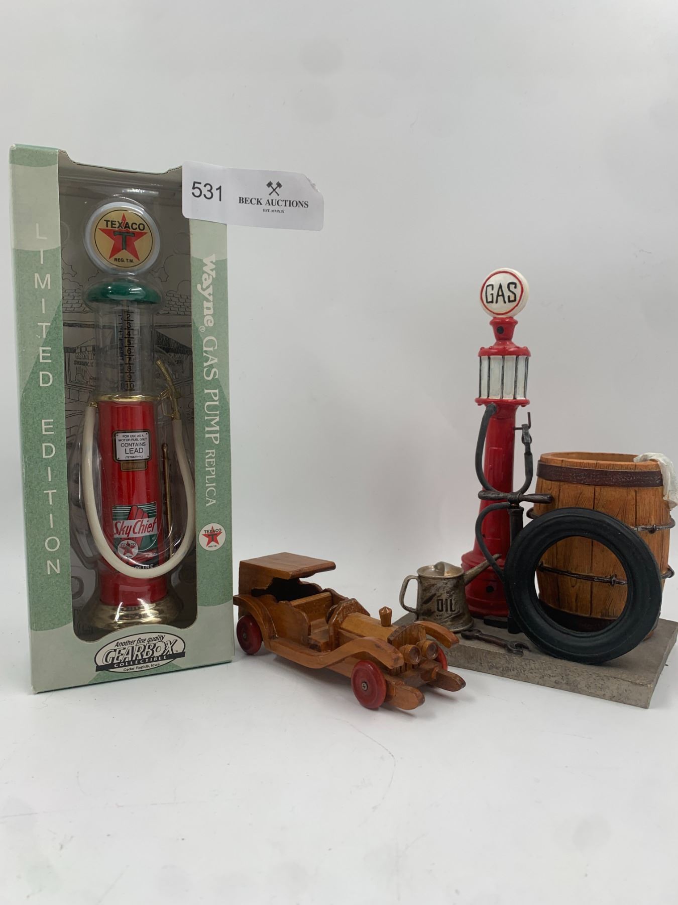Miniature Gas Pump Decorative Pieces and Wood Car