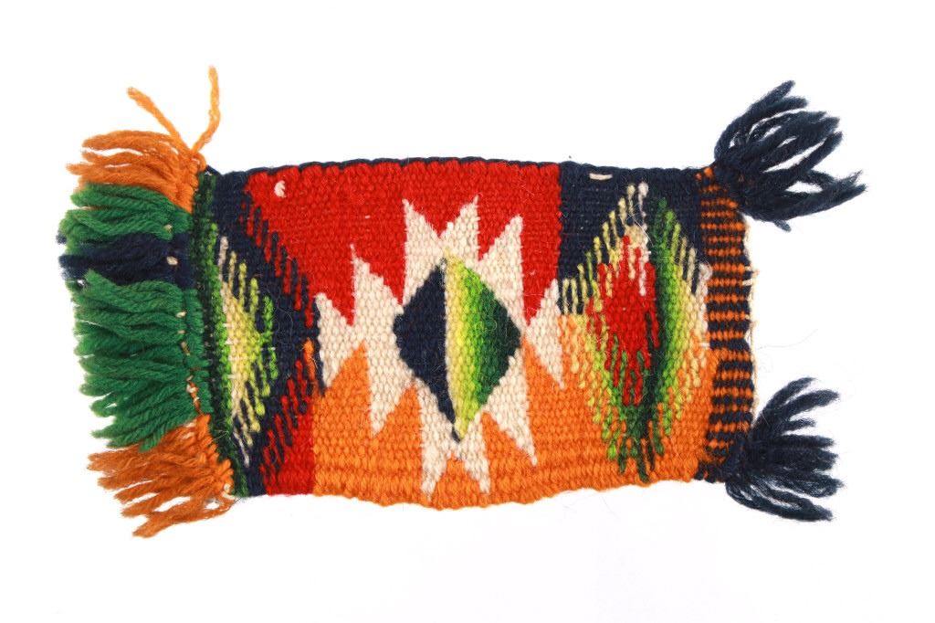 Featured in this lot is this miniature Germantown crystal dazzler sampler circa 1890-1900. The rug shows rich coloration with nice weave and a stepped design to the central and bordering medallions and includes colors such as red, orange , light green, yellow , and off white. The condition of this miniature sampler rug is good with no obvious signs of damage and in good overall condition. The measurements of this rug is 8 1/4" x 3 3/4". Provenance: From the renowned Sundog Fine Art Bozeman, Montana collection and collected by Bruce VanLandingham. Bruce VanLandingham was a pillar in the American Indian collecting community and a respected expert. Along with being an avid collector, Bruce also was the sole owner of Sundog Fine Art Gallery in Bozeman, which was both part museum and gallery. Identification#: E1107.