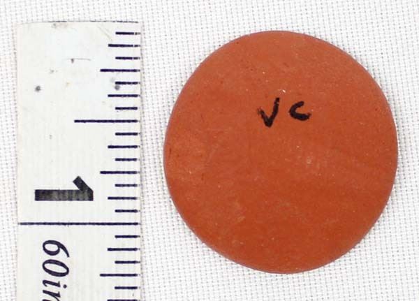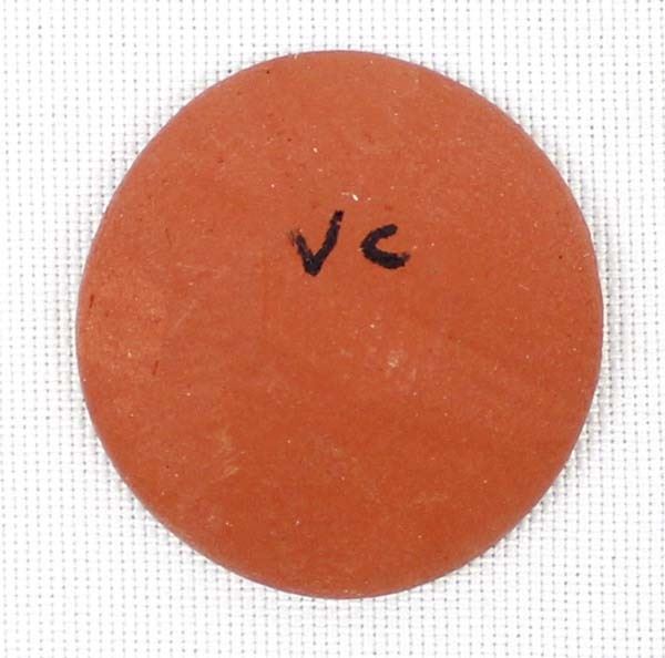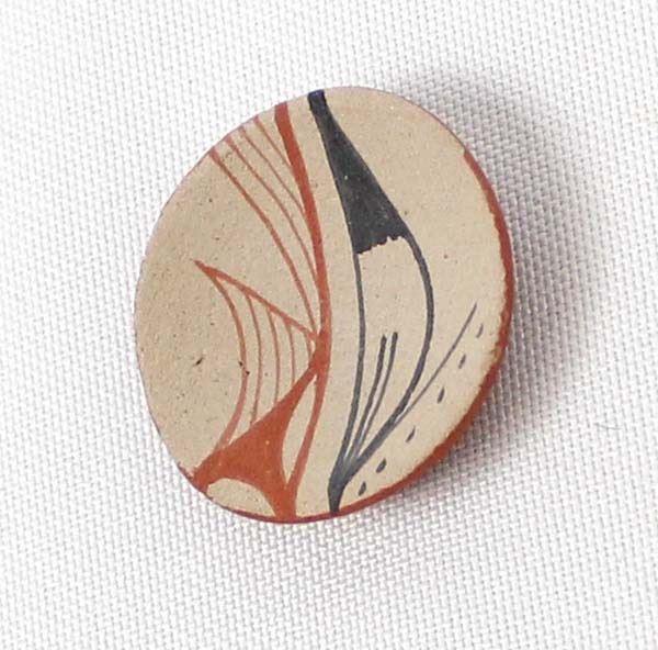 Miniature Native American Jemez Pueblo Pottery Shallow Bowl, measures 1''D and has artist's initials J.C. on the bottom