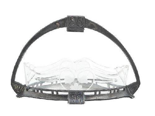 Silver-plated pewter, original blown, cut and engraved glass lining. Marked: A. K. & Cie, German, circa 1900 Size: 13.5 x 5.5 x 8.5 cm