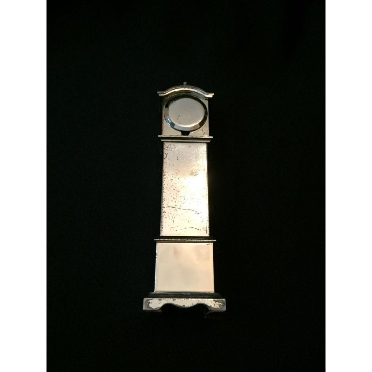 Estyma miniature travel clock, in the form of a long-case or grandfather clock. Quartz movement. Needs replacement battery 5 1/8" X 1 1/4" W.